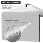 10x10 FT LARGE CAPACITY - Our outdoor 10ft pop up canopy provides 100 square feet of shade for about 10-14 people. 3 adjustable heights up to 9ft from floor to roof. Sturdy and Solid - The canopy tent frame is made of high quality steel and powder coated for rust resistance,High strength forging process with thickened walls, Not easy to break or deform and extra durability to give you better stability. Waterproof and sunshade - Its PU-coated 210D polyester roof and a basis weight of 160g/㎡ provides UPF 50+ UV protection effectively protect you from the sun.The CPAI-84 rated flame resistant fabric is water repellant and includes waterproof sealing tape to protect against water pooling in wet conditions. MULTIPLE USE OCCASIONS - Suitable for business, beach, party, camping, patio, gymnasium, Parking shed, and any other kind of outdoor sports. Can be installed with or without 2 tarp sidewalls according to different occasions, convenient and practical. Package contents - 1 x pop up tent, 2 sidewalls, 4 sandbags, 4 pegs, 4 x ropes, 1 carrying bag and 1 set of assembly instructions. PLEASE NOTE: This Pop UP Gazebo is not intended for use unattended or in inclement weather. makes a promise: In case of damage to accessories during use, please contact us in time, we will make action within 24 hours! NOTICE: The matching canopy roller bags and 4 sandbags may be NAVY BLUE or BLACK in color. Please Noticed!!!!