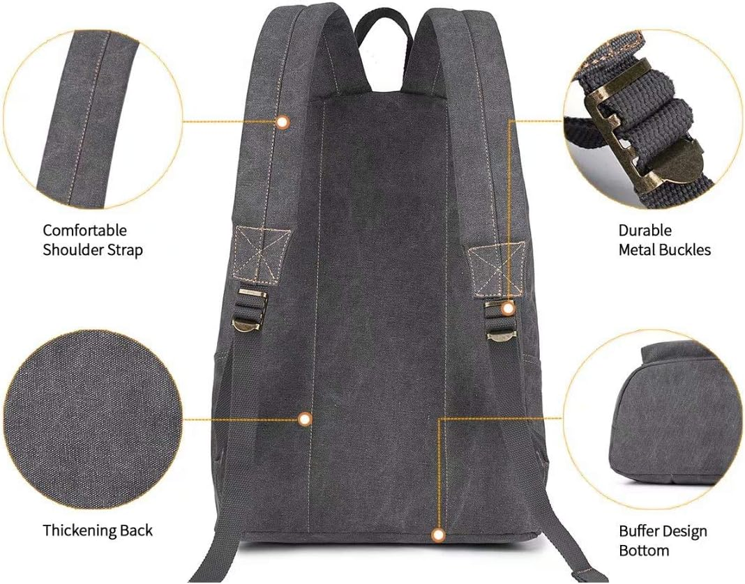 Store New Arrivals Add to Favorite View Feedback Contact Canvas Laptop Backpack, Durable Rucksack, Travel Bag Fits 15.6 Inch N Description Item model number JP19008 Age Range Description Adult Capacity Total 28 Liters Number Of Items 1 Color Gray Product Dimensions 7.4 x 12.5 x 18.1 inches Item Weight 0.62 Kilograms Department unisex-adult Units 1 Count Is Discontinued By Manufacturer No Size 28 Liters Durable & Popular: Our backpack is made of durable 16 oz canvas, which provides the best quality backpack for our customers. With high quality big zipper, The classic style with diamond shape decoration is suitable for all kinds of people: young people, commuters, travelers and so on. Lightweight & Functional: The lightweight daypack is designed a main compartment for tech electronics accessories such as your favorite magazines, books, iPad, etc. In addition, there is a separate space holding up to 15.6 Inch Laptop as well as 15 Inch,14 Inch and 13 Inch Macbook/Laptop. Spacious & Plenty of Space: Backpack dimension: 18.1’’(H) * 12.5’’(L) * 7.4’’(W); the capacity is 28 Liters. You can pack everything you want when traveling and studying. Comfortable & Adjustable : Adjustable shoulder straps and back side comes with comfortable and breathable thicken design, relieves the stress of your shoulder all the time. Thickening bottom protects your things better. Useful Pockets to organize your items: One exterior zipper pocket fits up to phone, and power bank, other small devices and daily necessities. Two interior packets for your pens, keys, wallet or other private little items. Product Description Washing instructions: Better Hand wash with room temperature. Hang to dry and store in ventilated place instead of sun exposure Notes: Actual color may vary from pictures due to computer settings, light environment and display All sizes are manually measured, with the difference in the measurement method, please allow 0.3-1.2 inches error in size margin If you have any question or the bag with any problem, please do not hesitate to lets know via email, we will try our best to help you resolve it. BASIC INFORMATION Material: Heavy Duty Canvas Matching color Lining : Durable nylon Closure Type : Zipper closure Dimension(H x W x D): 18.1 x12.5x 7.4inch Ultra-light weight: 1.37 pound Built-in multifunction pocket Large Main Compartment Convenient front pocket ABOUT US We offer the best prices around on high quality products. Our E-store includes media such as books, movies, music and games while offering electronics, toys, sporting apparel, clothing, tools, general home, garden items and more. SHIPPING We are always working hard to ensure your package arrives as soon as possible. Please understand that some factors like weather, high postal traffic, and the performance of shipping companies are outside of our control. RETURNS We offer a 30-Day Return Policy on items which you are not completely satisfied with. You have the option for a full-refund or an exchange of the item. PAYMENT We accept PayPal. CONTACT US This page content is yet to come Please ad us to your favorite seller and visit again later Thank You CUSTOMER SATISFACTION We try our very best to make sure every customer is completely satisfied. If there's a problem, message us! We're happy to help.