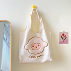 Features: Lightweight and easy to carry. Comfortable carrying strap. Large capacity, can be placed Book,Magezine,Pad,umbrella, kettle,phone,notebook,pressed powder box,Lunch Box,folding parasol. Handbag, shoulder bag, dual-use convenience. Best Gift: Perfect handbag fit any wear styles, occasions and seasons. It can also be used as a fashion gift for stylish ladies like mom or wife. Specifications: Material:Canvas Color Type:Chick/Sheep/Dog/Bear Size:Approx. Bag 40x32.5cm/15.74x12.79in Hand 22cm/8.66in Package Includes: 1xCanvas Handbag note: 1.Please allow 1-2cm errors due to manual measurement, make sure that you do not mind before you order. 2.Due to the difference between different monitors, the picture may not reflect the actual color of the item.