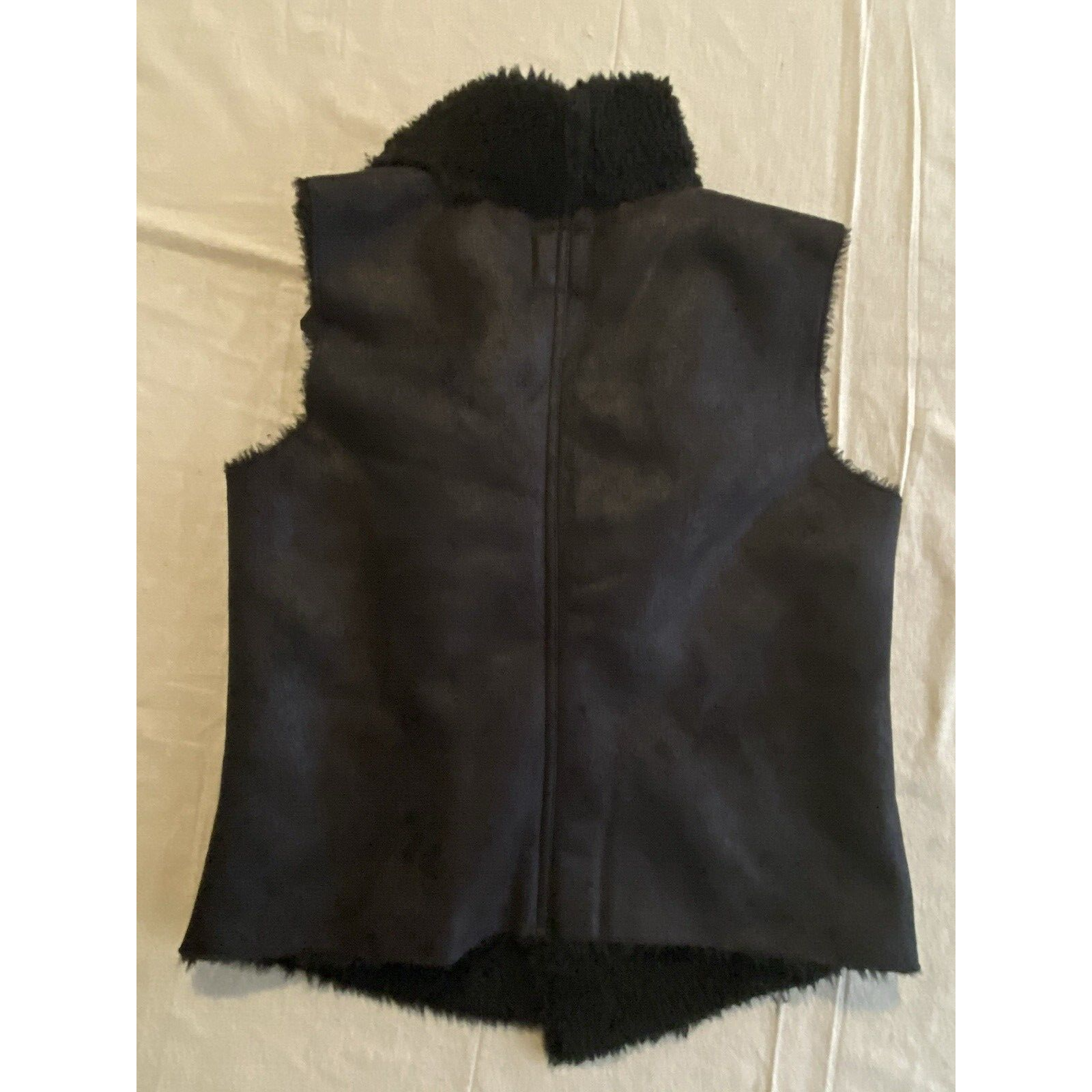 Canyon River Blues Womens Vest Size L / XL Black Faux Suede Faux Fur Lined Vest Excellent pre-owned condition. No visible flaws, however tag says L/XL but measurements look more like a M/L. Please pay attention to the measurements in photos. -Shell 100% Polyester -Faux Fur Lining 100% Polyester -Open Front -Machine Wash Cold - Delicate Cycle -SKU E24-570 -Measurements in Photos Questions? Please ask. Ships next business day. Offers welcome.