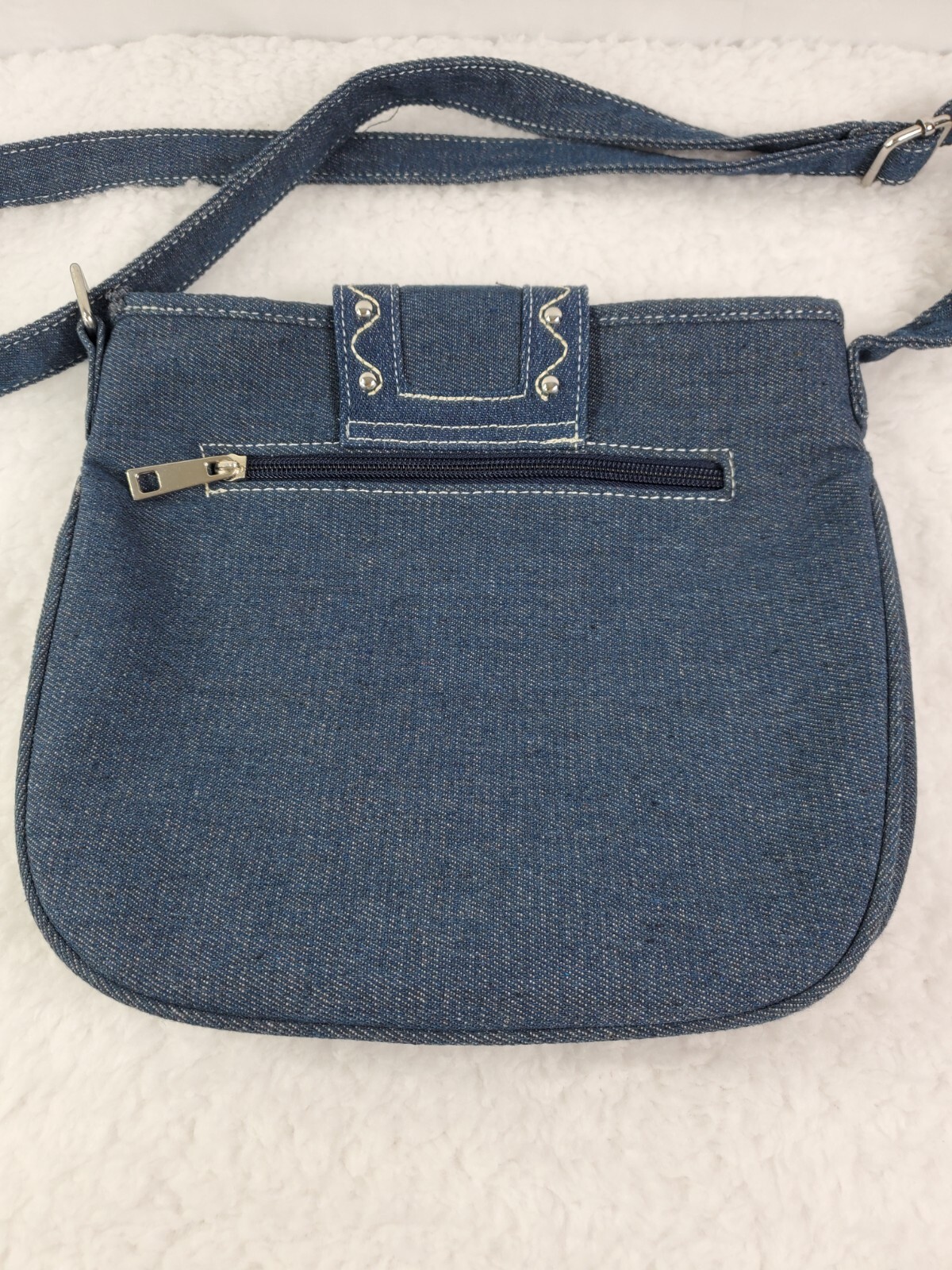 Elevate your accessory collection with the Canyon Sky Women's Denim Crossbody Bag, a versatile and stylish addition tailored for those who appreciate a blend of convenience and fashion. Boasting a semi-circle shape and a medium size of 10"x9"x8" inches, this bag offers ample space for your essentials without the bulk. The exterior features a classic blue denim fabric with studded accents, complemented by a functional bandana pattern, and a durable crossbody strap in a matching hue. The bag's interior is lined with a black fabric that ensures your items stay secure and dust-free, while the mix of silver, blue, and brown aluminum hardware adds a touch of rustic charm. With a mix of magnetic and zip closures, your belongings are kept safe and organized. Whether you're out for a casual day, traveling, or need a compact accessory for workwear, this Canyon Sky crossbody bag meets the mark for style and practicality.