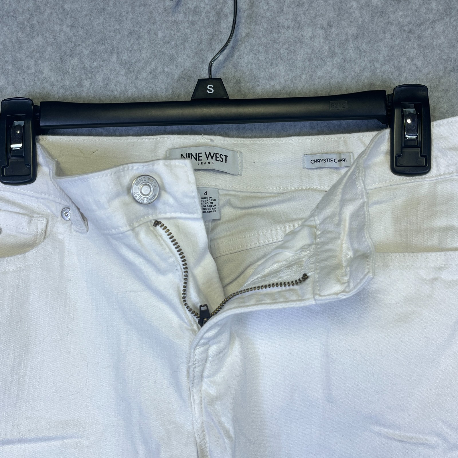 Nine West white Chrystie Capri pants with relaxed leg and stretch fabric. Polished, clean, and perfect for warm-weather outfits, resort wear, or business casual looks. Condition: Good pre-owned condition. Measurements: 30x22 (size 4)