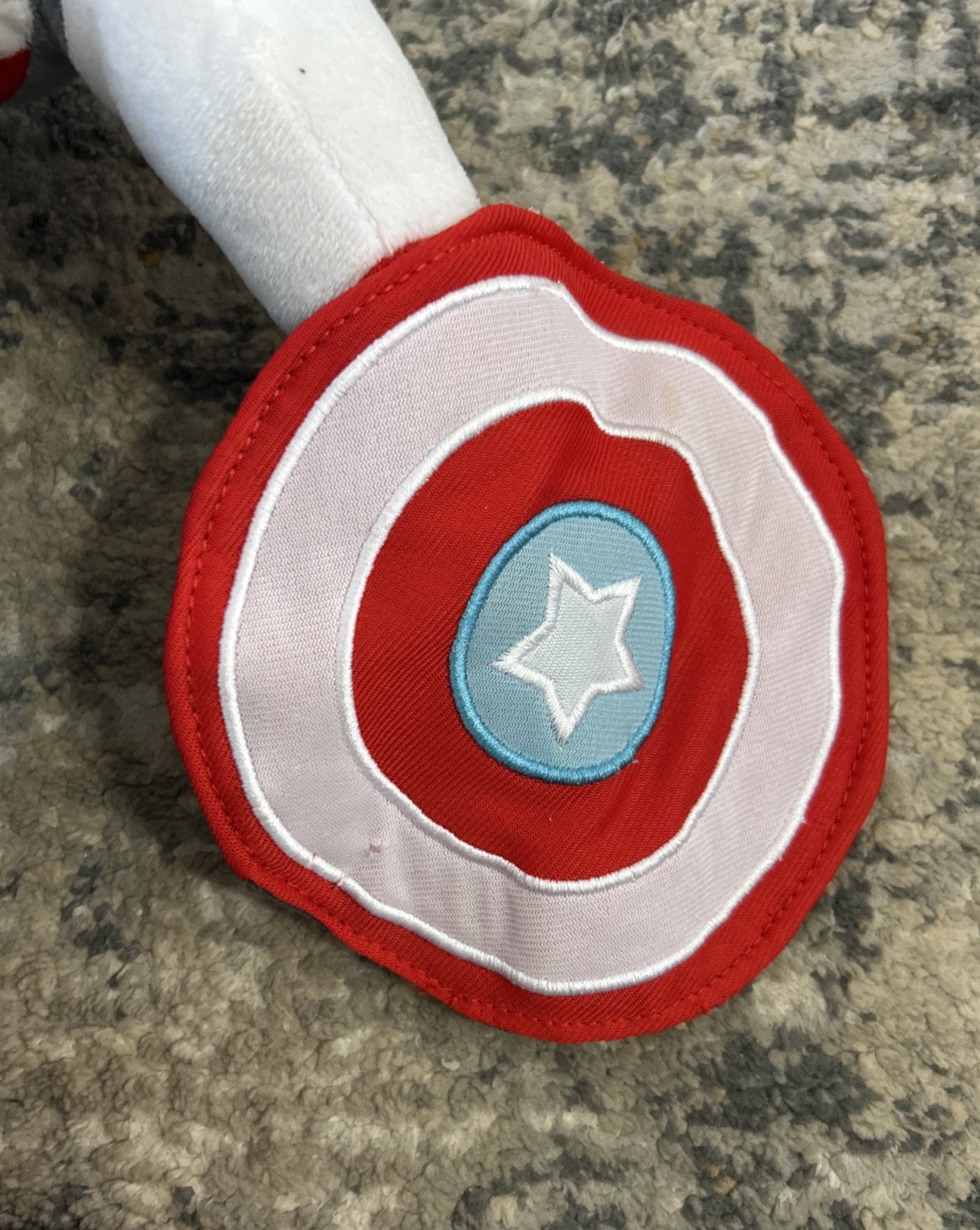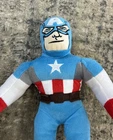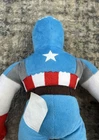 The product is a 17" plush Captain America action figure from the Marvel Avengers franchise. This superhero character is featured in the movies Captain Marvel and is known for his iconic shield and patriotic costume. Made of plush material, this toy is perfect for young fans of the superhero genre, allowing them to bring home a soft and huggable representation of their favorite superhero, Captain America.
