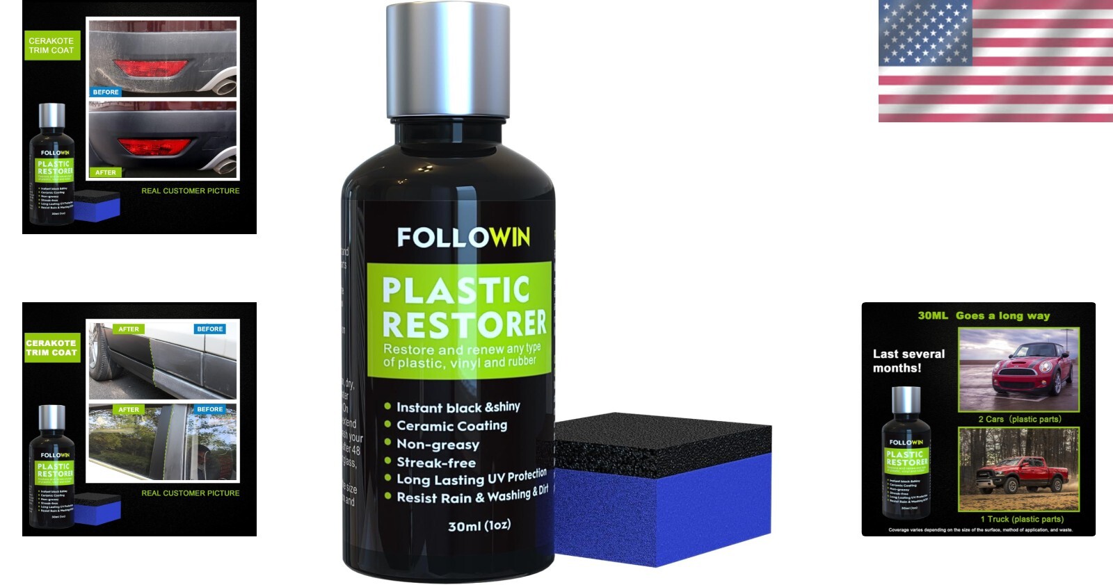 Plastic Restorer for Cars Ceramic Coating Hydrophobic UV Water Resistant 30ml ‹ › ‹ › ‹ › ‹ › ‹ › ‹ › ‹ › ‹ › ‹ › Plastic Restorer for Cars 30ml Ceramic Coating - Hydrophobic & UV Water Resistant Product Features: CERAMIC COATING, NOT DRESSING: Unlike conventional trim products, which offer only temporary solutions, our Plastic & Trim Restorer utilizes a pioneering German formula. This effectively removes oxidation from plastic surfaces and bonds to the pores of unpainted trims while forming a robust ceramic coating. LONG-LASTING PERFORMANCE: Each application requires only 5ml of our highly concentrated restorer, ensuring that one treatment lasts for up to 6 . A full 30ml bottle offers enough product to last up to 3 , standing steadfast against the elements. NON-GREASY FORMULA: Experience a streak-free finish with our restorer's unique formulation, drying completely to the touch after application. It effectively prevents premature aging, cracking, and fading, ensuring your vehicle maintains that immaculate appearance. EASY APPLICATION: We include a free applicator for a hassle-free experience. Simply pour a few drops onto the applicator, spread it evenly over the surface, and wipe off the excess. The product absorbs quickly, leaving behind a radiant shine. VERSATILE USE: Perfect for use on bumpers, mirror housings, door handles, vinyl rooftops, and all your plastic interior trims. For best results, ensure thorough cleaning and drying before application. Why Choose Our Plastic Restorer? If you desire to restore your vehicle's plastic surfaces back to showroom condition, our Plastic Restorer is your ultimate solution. Engineered for durability and efficiency, it not only enhances the shine but also protects against harsh weather conditions with its UV-resistant properties. Don’t let time and the environment diminish your car's exterior. Invest in our Plastic Restorer today and ensure your vehicle turns heads wherever you go! Shipping Free & Fast Shipping - We offer free shipping to most of the USA with a normal delivery time of 3-7 days. However, due to the current situation, additional delivery time (up to 3 weeks) may be required for some items. Alternative Carriers - We may use alternative carriers (e.g. USPS, FedEx, UPS, etc.) to ensure your package arrives safely and on time. Due to the use of multiple carriers, we are unable to provide a tracking number automatically. Handling Time - Orders are processed and shipped within 1-2 business days of receiving cleared payment. Shipping Restrictions - Shipping to Alaska, Hawaii, Puerto Rico, Guam, and other US territories may incur shipping charges or delivery restrictions. Please contact us before ordering, or your order can be refunded/cancelled. State Restrictions - There may be restrictions based on your state of purchase. For example, certain items may not be shipped to California due to state regulations. Contact for Tracking Updates - If you require tracking updates or have any concerns about the delivery of your order, please feel free to contact us, and we will be happy to assist you. Return 30-Day Hassle-Free Returns - We want you to be completely satisfied with your purchase. If you are not, you can return the item within 30 days of receiving it for a full refund or exchange. Easy Return Process - To start a return, simply contact us and we will provide you with a prepaid return shipping label and detailed instructions. Restocking Fee - There are no restocking fees for returns. However, the buyer is responsible for return shipping costs if the return is not due to a seller's error. Refund Processing Time - Refunds will be processed within 5 business days of receiving the returned item in its condition. Payment We accept all major credit cards, PayPal, and Apple Pay for your convenience. Your payment information is secure and encrypted to ensure a safe and seamless transaction. Please complete your payment within 3 days of purchase to avoid any delays in shipping. Feedback Your feedback is extremely important to us. We strive to provide the best products and customer service possible. If you are satisfied with your purchase, please take a moment to leave us a positive review. If you have any concerns or issues with your order, please contact us before leaving negative feedback. We are committed to resolving any problems and ensuring your satisfaction. Contact Us If you have any questions or concerns, please feel free to out to our customer support team. You can contact us through the eBay messaging system. We are available Monday to Friday, 9:00 am to 5:00 pm EST, and we will do our best to respond to your inquiry within 24 hours. Buy it now and enjoy a pleasant shopping experience! Manufacturer Part Number: Car Plastic Restorer Unit Quantity: 1.01 fl oz Type: Plastic Restorer : Car Plastic Restorer Country/Region of Manufacture: Car Plastic Restorer Unit Type: fl oz