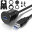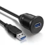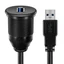 USB FLUSH MOUNT AUX INPUT STANDARD 3.0 USB FLUSH MOUNT FEMALE TO A MALE USB, this could be used in car, marine, bike or motocycle. Accessories such as braceket, flush mount components, screws & lid are included for the installation in existing hole or new hole on dashboard. Features Features with waterproof panel/dash mount with rubber cover protects the plugs being wet by rain or water. Comes with USB3.0 plugs and cable that is 10 times faster than traditional USB2.0 extension cable The cable supports up to 2 AMP current that charges your device quickly Accessories included for the installation of existing flush mount socket or DYI hole on your dashboard Package Content 3 foot long USB 3.0 extension cable + flush mount components such as screws, braceket & cover Dash Flush Mount USB Extension Mounting Dashbard Dock High Speed USB3.0 extension cable with USB Input for vehicle, marine, bike, motocycle & etc Come with accessories such as screws, braceket, flush mount components & cover for installation on dashbaord or other surface Connects devices that use USB Type A ports Diameter X Height: 1.26" X 1.77", easily snap in 28 to 30 mm hole, 3 feet - 1 meter long cable