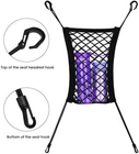Detail DRIVE WORRY-FREE - Our car net barrier can help prevent your naughty kids or smaller pets like Dogs in the back seat from jumping into the front seat and distracting you while driving. KEEP YOUR CAR NEAT & TIDY – This upgraded 2-layer car seat storage mesh can help to classify and storage your items like phone/tablet/purse/magazine/perfume/lipstick... and keep them in good order of reachable place. EASY INSTALLATION - No drilling nor stickers required, our car pocket organizer is simple and easy to install, which takes less than a minute with the long enough adjustable 2 top and 2 bottom stretchy ropes with hooks on it that can easily attach to the seats. HIGH INTENSITY & ELASTICITY – YICAI car dog barrier adopted thickened polyester fiber with strong flexibility, it can stretch to the perfect size based on different space between the driver and co-driver seats of various car models. UNIVERSAL FITMENT - Sized of 11"x12" but can be stretchable, our car storage organizer is a universal car seat mesh that fits most Jeep, Off-road, SUV and other vehicles' backseat with headrest pole.