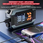Features: Powerful Jump Starting: Capable of jump-starting 12V gasoline engines up to 3.0L and diesel engines up to 2.5L, this unit provides a peak current of 2000A, ensuring quick and reliable starts even for larger vehicles. Versatile Emergency Lighting: Equipped with three lighting modes – constant light, strobe, and SOS – this device ensures you're prepared for any situation, providing visibility and signaling in the dark. Intelligent Battery Clamps: The smart clamps automatically disconnect to prevent short circuits, enhancing safety and reliability during use. Multi-Function Power Bank: Beyond vehicle starting, this unit functions as a power bank with fast-charging capabilities, supporting to charge various digital devices. Enhanced Safety Features: With multiple protection systems including short-circuit, overcharge, over-discharge, reverse polarity, over-voltage, over-temperature, under-voltage, and over-current safeguards, you can use this unit with peace of mind. More Inflation Modes: It includes 3 extra adapters and 1 ball pin to cater to a variety of inflation requirements, making it an excellent option for car, motorcycle, bicycles tires or ball, experiencing effortless inflation with our smart tire inflator. Precise Tire Inflation: Equipped with a real-time LED display for tire pressure, this unit allows you to monitor the current pressure accurately. The digital screen provides clear readings, ensuring precise inflation and eliminating guesswork. Specification: Surface material: ABS plastic Inflation flow rate: 19L/min Product lighting: LED Charging mode: DC5V-2A (Type-C port) Operating voltage: 14.8V Rated cylinder power: 60W Piston diameter (cylinder) : 17 cylinders Charging time: 6-7H Battery capacity: 99900mAh Starting current: 800A Peak battery: 2000A Continuous working time: 17min±10% Maximum current: 8A Product noise: ≤84dB Temperature resistance: -10°C~+85°C Storage temperature: -10°C to +50°C Size: 15*9*4.6cm Maximum output pressure: Maximum 150PSI Inflation hose length: 20cm Protection: anti-short circuit protection; Overcharge protection; Overdischarge protection Suitable for: 12V 3.0L gasoline cars and 2.5 diesel cars Package Included: 1 x Car Jump Starter 1 x Smart Clamps 1 x TYPE-C Charging Cable 4 x Inflator Nozzle 1 x EVA Storage Bag 1 x User Manual