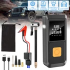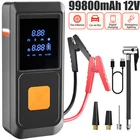 Car Jump Starter Jumper Power Bank 99800mAh Battery LCD Display Tire inflator US Item Description 32000mAh Jump Starter&Air Compressor Specifications: Capacity: 32000 mAh Charging Time: 4 hours Interface Type: 2USB Input Voltage: 5V Adapted Model: 12V Protection Type: Intelligent Protection Working Temperature:-40 ~ 80. Cycle Times: 3000 times Overall Dimensions: 22*17*6cm Starting Current: 1000A. Peak Current: 2000A Additional Functions: Mobile Phone Charging, Lighting, Battery Clip. Output Voltage: 12V Display Mode: Digital Display Suitable Car Series: 12V, ≤6.0L gasoline and ≤2.0L diesel vehicle. Product advantages: Large peak current can start 12V gasoline and diesel vehicles. The product has 5V/2.1A*2, 12V-16.8V=3A output port, which can be used for charging mobile phones, MP3/MP4, PSP, cameras and other electronic products. Automobile tire pump, and other 12V equipment for power supply. LED light (lighting, flashing, emergency help) The main components of the product are high-end imported chips, which have strong stability and strong startup. Equipped with intelligent battery clip, it is safer to use. The product adopts imported material shell, which increases the safety performance. Power supply has passed CE, quality inspection report and MSDS. Package includes: 1 x Car Jump Starter 1 x USB Charge Cable 1 x Battery Clip 3 x Gas Nozzle 1 x US Plug 1 x Phone Charging Cable 1 x Storage Box 1 x User Manual A-99800mAh Jump Starter&Air Compressor Features: 8-IN-1 JUMP STARTER: Not only is it a car jump starter, it can also be used as a pump, portable battery pack, emergency LED light with 3 modes (flashlight, SOS, strobe) and power bank to charge mobile phones, tablets and other USB devices. hard press power button 3 seconds to turn on. HIGH POWER BOOSTER: The car battery charger with a 1600A peak current, can start the 12V vehicles up to 10L Gas or 8.5L Diesel engines. The powerful battery booster works even in extreme temperatures. Suitable for car, truck, motorcycle, boat, RV or tractor and so on. INFLATION FUNCTION: The car battery jump starter is equipped with tire inflation and 3 types nozzles, supporting 3 optional units (PSI, BAR, KPA), which can inflate various tires and balls. In addition, there are smart screen and tire pressure detection function. EMERGENCY LED LIGHT: The jump starter battery pack features 3 LED light modes. First of all, it can be used as a flashlight, which is very bright and lasts long time. Secondly, when you need rescue for survival, turn on SOS and strobe mode. Ideal for camping and long drives. PROTABLE POWER BANK: The car battery starter capacity is very large and can charge for phone, laptop, camera and all USB digital devices. Apart from that, charging is very fast and it is very convenient to use, just long press the power button and plug in the USB data cable. SAFETY PROTECTION: The upgraded jumper cable adds a smart chip, so you don't have to worry about connecting the wrong positive and negative poles of the car battery, or short circuits and sparks. It is very safe and can be connected to any car below 12V. WHAT YOU WILL GET: You will get 1 X jump starter with air compressor, 1 X smart jumper cable, 1 X type-c cable, 1 X carrying bag, 1 X pump tube, 3 X air nozzle(note:pump tube and air nozzle in the top side storage area of the jump starter), 1 X user manual. If you have any after-sales questions about jump starter, please feel free to contact us B-99800mAh Jump Starter&Air Compressor Feat ures : 1. Emergency Power Supply & Air Pump Integration: This device combines an emergency power supply with an air pump, allowing for instant power recovery and rapid tire inflation during emergencies. 2. Four-in-One Functionality: Equipped with four major functions - tire inflation, vehicle starting, digital charging, and emergency lighting - providing comprehensive support for various roadside situations. 3. Smart Anti-reverse Battery Clamp: Featuring a smart anti-reverse battery clamp with 12 layers of safety protection, ensuring safe and secure operation during use. 4. Real-time Monitoring & Intelligent Display: The device offers real-time monitoring and intelligent digital display, providing clear and accurate tire pressure status at a glance, with an error value of ≤0.05Bar. 5. Cold Weather Resilience: Capable of starting without pressure in temperatures as low as -20°C, making it resistant to freezing and ideal for use in cold weather conditions. 6. Emergency Lighting: Offers three lighting modes for emergency illumination, providing added safety and visibility during roadside emergencies. 7. Simple Operation: Easy-to-follow operation steps - connect, clamp, ignite, and remove - ensuring hassle-free usage for users of all levels. Specifica tions : - Charging Input Voltage: 5V - Working Voltage: 14.8V - Maximum Power Consumption: 60W - Maximum Current: <6A - Start-up Current: <300A - Maximum Inflation Flow Rate: 25L/min - Battery Capacity: 99800mAh - Suitable Displacement: Gasoline vehicles up to 5.0L, diesel vehicles up to 4.0L - LED Brightness: 20LM - Maximum Inflation Pressure: 150PSI - Measurement Accuracy: ±1.5PSI - Pressure Units: PSI, KPA, KG/c㎡ - External Hose Length: 100MM±10MM - Operating Temperature: -30℃~60℃ - Product Dimensions: 20*8.75*4.3cm Package Contents: 1 x Main Unit 1 x Battery Clamp 1 x Air Hose 1 x Accessory Pack 1 x Charging Cable 1 x Cloth Bag 1 x User Manual C-99800mAh Jump Starter&Air Compressor Features: 1. Emergency Power Supply & Air Pump Integration: This device combines an emergency power supply with an air pump, allowing for instant power recovery and rapid tire inflation during emergencies. 2. Four-in-One Functionality: Equipped with four major functions - tire inflation, vehicle starting, digital charging, and emergency lighting - providing comprehensive support for various roadside situations. 3. Real-time Monitoring & Intelligent Display: The device offers real-time monitoring and intelligent digit