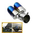 Car Muffler Tip Rear Dual Tail Exhaust Pipe Blue Titanium Stainless Steel Cool