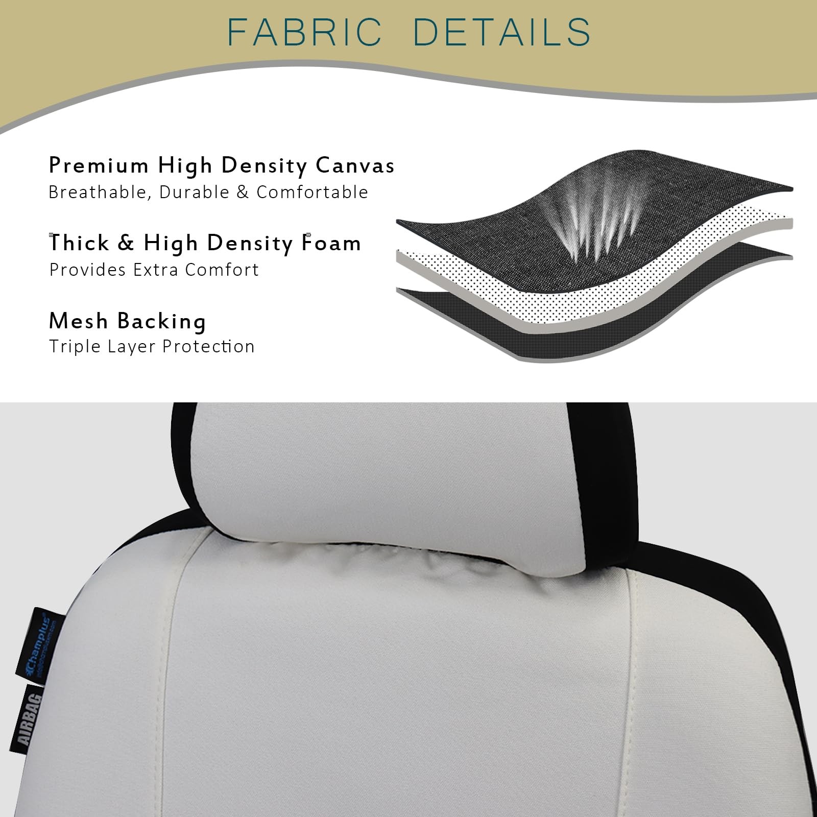Canvas Seat Covers These 2 front seat covers are crafted from exceptionally durable and high-canvas fabric, offering superior resistance to wear, tears, and everyday use for long-lasting protection. The rugged, thick and super breathable canvas fabric of these seat protectors can effectively shields your original upholstery from spills, stains, pet hair, UV rays, and abrasion. They will preserve your car's interior value and give your vehicle a brand new look! These bucket seat covers are laminated with thicker HIGH-DENSITY foam for extra cushioning. Reducing fatigue on long drives—ideal for commuters and road trips. Much thicker than most of other seat covers in the market. These pair seat covers are sturdy, breathable, odorless, airbag , universal fit, easy to install, OEM look design, machine washable, tumble dry allowed. Our automotive seat covers are easy to install, no tools required. No need to attach straps through confined seat bottom. Package comes with a instruction.