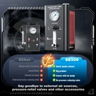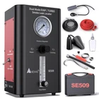 Car Smoke Detector EVAP Smoke Machine Vacuum Fuel Pipe System Leak Diagnostic NEXAS SE509 Dual Mode EVAP Machine NEXAS SE509 Automotive Smoke Leak Detector is a professional automotive pipeline leak detection tool. It quickly detects the tightness of the piping system through air mode and quickly and accurately locates leaks with safe and harmless fumes. It is simple to operate, suitable for a variety of vehicle types and complex piping systems, and is a powerful assistant for automotive maintenance technicians to solve pipe leakage problems. ✔️Air Mode & Smoke Mode ✔️ Flow Meter & Pressure Gauge ✔️ EVAP Detection ✔️ Wide Testing Range ✔️ Fast Smoke Out Why We Choose NEXAS SE509? 👍EVAP & Turbo 2-IN-1: A professional automotive smoke machine for all types of vehicle smoke leak tests. It efficiently detects low-pressure evaporative emissions and high-pressure vacuum systems, designed for all leak testing scenarios, including EVAP systems, vacuum systems, intake and exhaust systems, turbos, superchargers, EGR systems, cooling systems, engine blocks, bodywork, and oil leaks. Equipped with 2 Micro Air Pumps: No need for a separate workshop air supply, so you won't need to hook the air compressor up every time you test. The smoke leak detector instantly generates a large volume of clean, ultra-low odor smoke. With a smoke output speed of 20 LPM, it efficiently detects any vehicle pipeline leaks in a short time, significantly saving your diagnostic time. 👍 Customized Pressure: In EVAP mode, the pressure value of the smoke detector is fixed at 0.75PSI, in TURBO mode, it can be adjusted between 3-20PSI through the pressure regulator, which can quickly and accurately detect the tiniest leaks, the powerful function and extremely high cost-effective make it the perfect choice for mechanics, stores and car owners! 👍Diagnose All Types of Leaks with Adapters: Get the SE509 now and you can start your automotive smog leak detection right away, the included intake bladder, cone plug, oil jug and other must-have accessories will come to you in a portable carrying case to meet all your vehicle system testing needs. But please note that mineral oil is not included 👍 5-Minute Auto Cycle: The smoke machine continuously generates sufficient smoke for 5 minutes, then automatically switches from smoke mode to air mode to save on mineral oil/baby oil consumption. To continue generating smoke if needed, simply press the button on the top of the machine. 👍 Dual Test Modes: air mode and smoke mode. It can adapt to a variety of complex testing environments and needs. Secondly, SE509 is built-in with two sets of high-power air pumps, users do not need to buy additional air pumps or air compressors, thus saving costs. It supports leakage detection of various vehicle systems, including but not limited to air intake system and exhaust system. Its high degree of compatibility also makes it suitable for all types of vehicles, truly realizing a multi-purpose machine. 👍 Visual Level Gauge And Handy Drain Outlet: Equipped with visualization tools such as oil level meters, flow meters and pressure gauges, users are able to monitor the parameters of the testing process in real time, which not only improves the ease of operation, but also enhances the accuracy of the test 👍 Powerful And Easy To Operate: NEXAS SE509 comes with its own air pump, so you don't need to rely on other air generators. Connect the detector to a DC12V battery to output a large amount of smoke within 30 seconds of powering it on. 👍 Quick Leak Diagnosis By Pressure Display: No leaks: if the value of the pressure gauge remains the same, it means there is no leak in the pipeline system. Small leak: if the value of the pressure gauge drops a bit, it indicates a small leak in the pipeline system. Serious leak: if the pressure gauge reaches zero, it indicates a large leak in the pipeline system. 👍 Dual Test Modes: No Need To Buy Additional Air Compressor. SE509 offers both air mode and smoke mode detection. This dual-mode design provides users with greater flexibility, allowing the detection process to be adapted to more scenarios. During initial inspection, the air mode can be used to quickly determine if there is a leak in the system, while the smoke mode can pinpoint the exact point of leakage, greatly improving inspection efficiency 👍 Overheating Protection: Overheat protection automatically shuts off the power supply when the temperature of the device exceeds 75°C, preventing damage to the device, while freeze protection keeps the device functioning in temperatures as low as -20°C Full system diagnostics, don't miss any leaks. Crankcase System Test: Excessive pressure or corrosion of the crankcase is the main reason to damage the seal of the crankcase and cause oil leakage. Intake System Test: Leakage in the air intake system will lead to insufficient intake of the car engine, which will result in scant engine power. Car Sealing Test: Poor airtightness of the car may lead to a lot of inconvenience like inability to keep warm dusty, not soundproof, and not waterproof , etc. Exhaust System Test: Unpurified harmful gases to be discharged into the atmosphere or increase vehicle noise is the main disadvantage when leaks happened in the exhaust. Fuel Tank System Test: When there are gaps in the fuel tank and piping caused by improper installation or insufficient sealing of the fuel tank cap, it can cause leaks in the fuel tank system. Turbo Test: The leakage of coolant would cause the engine to report high water temperature.Various Pipe Fittings Test: Smoke testing of brake hoses, power steering hoses, cooling system hoses, air conditioning system hoses, turbocharger hoses, fuel hoses, intake and exhaust system hoses, etc. EVAP System Test: Leakage of the fuel evaporation system will cause fuel vapor to leak into the atmosphere, causing waste and pollution or unstable engine idling. EGR system test: Exhaust gas r