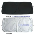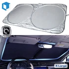 Better Fit - The size XL - 74.5" x 35.5" / 190CM × 90CM of car windshield sunshield is suitable for most vehicles. It is the best for SUVs, Trucks and Vans. Find your vehicle in the Size Chart(Don't see your vehicle in the List? Please Ask us). Measure before purchasing to get the best size for your car windshield. Higher Quality - 210T high quality car windshield sun protector which has higher density, providing better protection against Sun, and blocks up to 99% of damaging UV rays and Heat build-up. It helps protect vehicle's interior and prevents cracking & fading to dashboard and plastic trim. Easy To Use and Store - Our sun shade for car windshield uses elastic steel wire, so that it will not deform after repeated twisting tests for many times, and it is easy to unfold and store. We can Install and fold in seconds without any suction cups or adhesives. Store your Car sunshade in your Door pocket, behind your sun visor or behind your car seat protector. The Perfect Gift - This sunshade for car front window will make the best of auto gifts to match the baby infant car seats. It is also the best of car gifts for anyone who loves car accessories or has children or pets that need sun protection. Installation Steps Get the car windshield sun protector out of the bag and open it in car Put it against the windshield(silver side is facing outside and Silver side is facing the inside) Put the windshield protector for sun behind rearview mirror Lower the sun visors and press them to windshield for an additional support Package includes 1 x Car Windshield Sunshade(74.5" x 35.5") 1 x Storage Bag