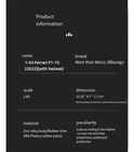 Item No.: 36831 Product Category: Racing Color: [In Stock] Ferrari F1-75 General Paper Box No. 16-36 Vehicles/Box, [In Stock] Ferrari F1-75 General Paper Box No. 55-36 Vehicles/Box, Ferrari F1-75 Acrylic Decoration No. 16-12 Vehicles/Box, [In Stock] Ferrari F1-36 Vehicles/Box 75 Acrylic Decoration No. 55-12 Vehicles/Box, Ferrari F1-75 75th Anniversary Edition Acrylic Decoration No. 55-12 Vehicles/Box, Ferrari F1-75 75th Anniversary Edition Acrylic Decoration No. 16 Can DIY: No Control Method: Force Control Specification: 12 pcs/box for high-end decoration; 36 ordinary vehicles/box Multifunctional: No Applicable age: Youth (15-35 years old) 3C configuration category: Toys for 14 years old and older Material: Alloy Car model scale: 1:43 Do you have anime characters? No Electric: No Is it a static model? Yes Cus tom processing: No Is there a shopping guide video? Yes Packing method: Color box Category: Car models