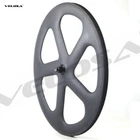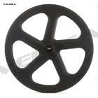 55mm depth rim, keep your speed easily 24mm width aero design,provide the best aerodynamic performance 70mm width aero spokes,strong for professional track racing Tubeless ready Specifications Rims Material: Toray T700 full carbon fiber Surface Weave: 3k/ud/12k Model: New aero 5-spoke Finish: matte/glossy Profile: Clincher/Tubular Brake track width: 25mm Rim deep: 55mm size: 700C Max Tire Pressure: 120psi Max rider weight: 150kg Brake track area top to bottom: 14mm Effective brake track area top to the bottom: 11mm Product warranty 1 year Hub type: Novatec track hub Novatec road hub bearing type SKF sealed bearing Spokes Material: Carbon Spoke count: 5 spokes Brake pads SHlMANO or Campy Weight Clincher Front Wheel:960 ±30g Clincher Rear Wheel :1050 ±30g Tubular Front Wheel: 860 ±30g Tubular Rear Wheel: 950 ±30g NOTE: If you decide to purchase, please choose from the following order spec template and leave a message to us. WEAVE: 3K or UD or 12K FINISHING: Matte or Glossy HUB COMPATIBILITY(road): Track cog body or SHIMAN0 9/10/11 Speed or CAMPAGN0L0 9/10/11 Speed Detailed Pictures