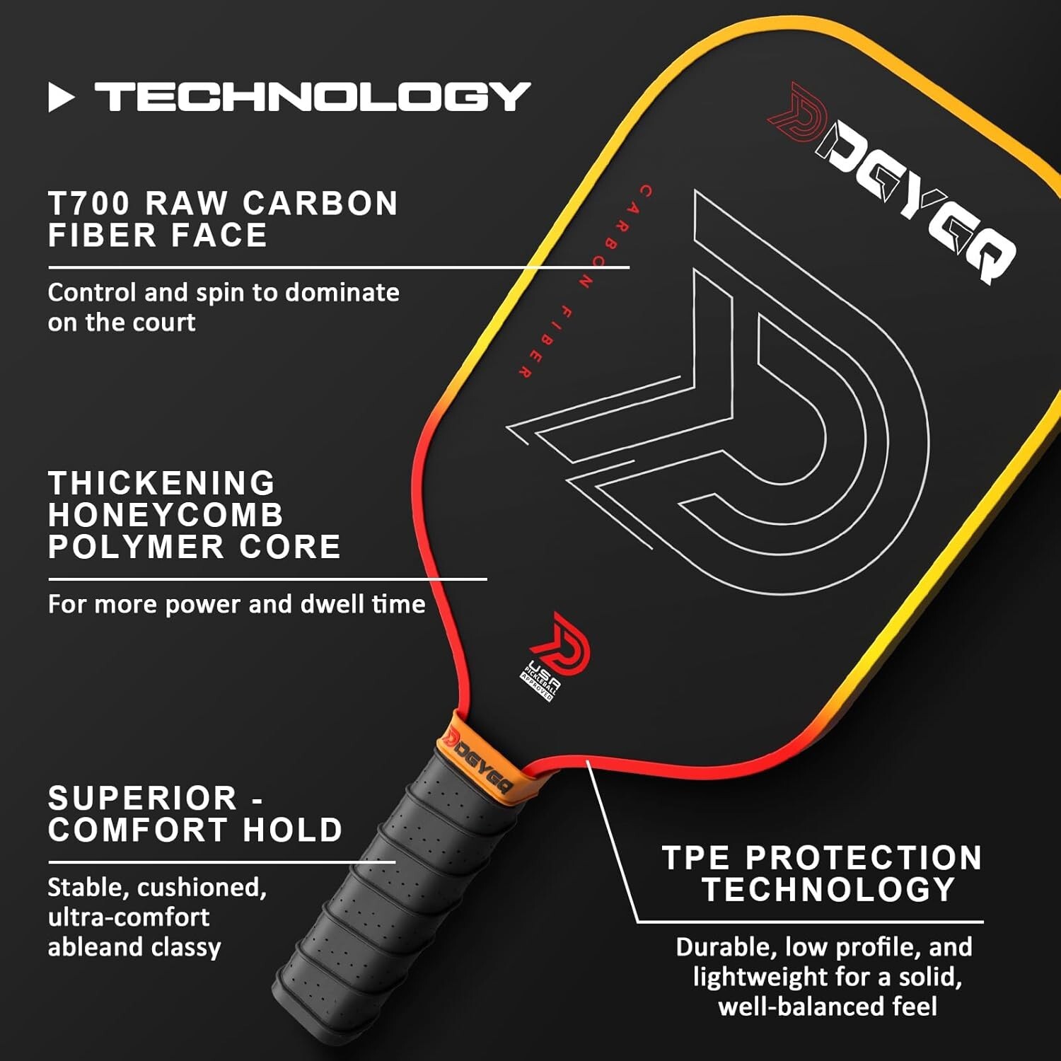 The DGYGQ brand offers a professional carbon fiber pickleball paddle with a unique honeycomb core design, specifically model B0DTF3S248-df-e1p. This advanced pickleball racket is designed for high performance, combining lightweight durability with a responsive feel for precise gameplay. The carbon fiber material and honeycomb core ensure optimal control and power, making it a top choice for competitive pickleball players looking for a superior paddle.