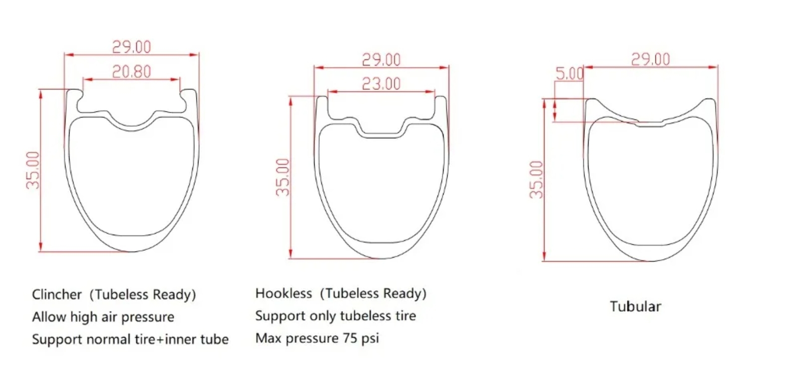 This rim can be rim brake version and disc brake version. Please choose the option as you need. Rim brake version with basalt fiber brake surface Disc brake version without brake surface Hooked clincher rim allow high tire pressure,support normal tire and tubeless tire Hookless rim allow extra light weight, but only support low tire pressure with tubeless tire 2-Year-warranty. Maybe not the cheapest , but the best quality. One piece molding Customized painting NOTE: If you decide to purchase, please choose from the following order spec template and leave a message to us. WEAVE: 3K or UD or 12K FINISHING: Matte or Glossy Spoke holes type: For internal nipples or For external nipples Spoke holes count: Detailed Pictures
