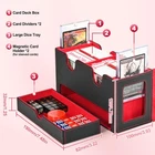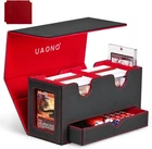 Two Commander Display: The double deck box is specially tailored for commander EDH players; Through the display window you can easily glance at the box's contents without opening the box; Included two 35pt card holder can show the card clearly Durable and Functional: Card deck box is made of PU leather exterior that provides good protection, and soft microfiber interior to protect your cards from scratches; Wide U-shaped opening ensures easy access to your cards, making it convenient Large Capacity: This display deck box works with unsleeved cards, single-sleeved cards, double-sleeved cards; Each case can hold 140+ single-sleeved cards or 100+ double-sleeved cards; Included two card dividers allow you to classify different cards Strong Magnetic: The card storage box features strong magnetic closure that ensures the box stays tightly closed even if it is tipped over, provide good protection for all types of cards; The dice tray design helps you to store dice and counters Good Choice for Card Collectors: UAONO deck case for trading card is a ideal choice for gamer, suitable for storing game card, sports card ect.; Enjoy card games with your friends or family; If you have any questions, feel free to contact us Product Description Card Deck Box With Dice Tray Large Capacity Speaking of capacity, we've tested this card storage box with various popular sleeves. It can comfortably hold up to 200+ double-sleeved cards or an impressive 280+ single-sleeved cards. And don't forget the giant dice tray that can accommodate more than 50 dices – all your gaming essentials are organized and within arm's reach. If you are an avid commander EDH player, then look no further! Our innovative design is tailored to meet the needs of commander enthusiasts like you. With this card storage box, you can safely house your cards and showcase your commander with pride in our unique commander slot. Moreover, 2 magnetic holders can prevent the commander accidentally from shuffling into your cards.