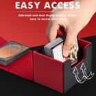 ๐—ฃ๐—ฟ๐—ฒ๐—บ๐—ถ๐˜‚๐—บ ๐—ค๐˜‚๐—ฎ๐—น๐—ถ๐˜๐˜†๏ผšPremium mtg card deck box has two-layer construction, the outer layer that is plasticized water-resistant PU leather material, and the inner layer has a soft microfiber material to protect the cards inside. This box is better than the basic boxes made of single-sheet PVC-type material. Made from archival-safe, non-PVC material, the ZLCA Card Deck Box is the perfect way to store your cards. ๐—›๐—ถ๐—ด๐—ต ๐—–๐—ฎ๐—ฝ๐—ฎ๐—ฐ๐—ถ๐˜๐˜†๏ผšCompared with the traditional plastic card box, the durable leather card deck box gets an upgrade, and offers more room for your cards. Specially designed for Commander EDH players, but also for all regular decks with extra cards or tokens. Designed to hold 100+ double-sleeved cards or 120+ single-sleeved cards. If you donโ€™t sleeve cards and use this for non-premium cards/games, this will hold over 200 cards. ๐—ฆ๐˜๐—ฟ๐—ผ๐—ป๐—ด ๐— ๐—ฎ๐—ด๐—ป๐—ฒ๐˜ ๐——๐—ฒ๐˜€๐—ถ๐—ด๐—ป๏ผšTight stitching and 8 powerful magnets keep the card deck case secure during transport. Even when fully loaded and turned upside down, the card holder case stays tightly closed at all times, no need to worry about losing your precious cards. The stitching is clean and all corners look great and are glued well. ๐—จ-๐˜€๐—ต๐—ฎ๐—ฝ๐—ฒ ๐——๐—ฒ๐˜€๐—ถ๐—ด๐—ป๏ผšThe box features a double-sided, wide-mouth U-shaped design. Even if the box is full of cards, you will be able to easily remove them all at once. The just-right design allows you to put and take cards with ease and without hindrance. ๐— ๐˜‚๐—น๐˜๐—ถ๐—ฝ๐—น๐—ฒ ๐—จ๐˜€๐—ฒ๐˜€๏ผšOur game card box holds your double-sleeved, KMC inners, Dragon Shield outers, and commander deck perfectly. Also compatible with Magic The Gathering, YuGiOh, and Cardfight Vanguard, Duel Masters, etc, a variety of TCG/CCG/LCG & other collectible cards. We highly, recommend giving these a try. Product Description ZLCA CARD DECK BOX Add to Cart Add to Cart Add to Cart Add to Cart Add to Cart Add to Cart Customer Reviews 4.7 out of 5 stars 669 โ€” 4.7 out of 5 stars 287 4.9 out of 5 stars 239 4.7 out of 5 stars 453 4.8 out of 5 stars 456 4.7 out of 5 stars 453 Price $9.99 $ 9 . 99 โ€” $24.99 $ 24 . 99 $13.49 $ 13 . 49 $23.99 $ 23 . 99 $14.99 $ 14 . 99 $12.99 $ 12 . 99 Dice Tray โœ˜ โœ˜ โœ” โœ˜ โœ˜ โœ” โœ˜ Product Size 4.1*3.5*3.1inch 3.2*3.1*4.1 inch 8.86*3.94*4.88 inch 3.9*3.2*4.3 inch 11.4*9.4*4.1inch 6.1*4.1*3.9inch 11.3*3.7*4.3inch Unsleeved Cards 220+ 200+ 600+ 200+ 2400+ 350+ 800+ Single-sleeved Cards 120+ 100+ 300+ 120+ 1800+ 200+ 600+ Double-sleeved Cards 100+ 80+ 200+ 100+ 1050+ 150+ 500+