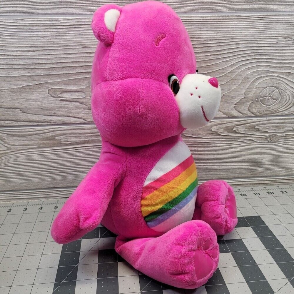 Care Bears Cheer Bear Pink Rainbow Pride Plush Stuffed Animal Just Play 2015 20" Light wear. see all pictures.