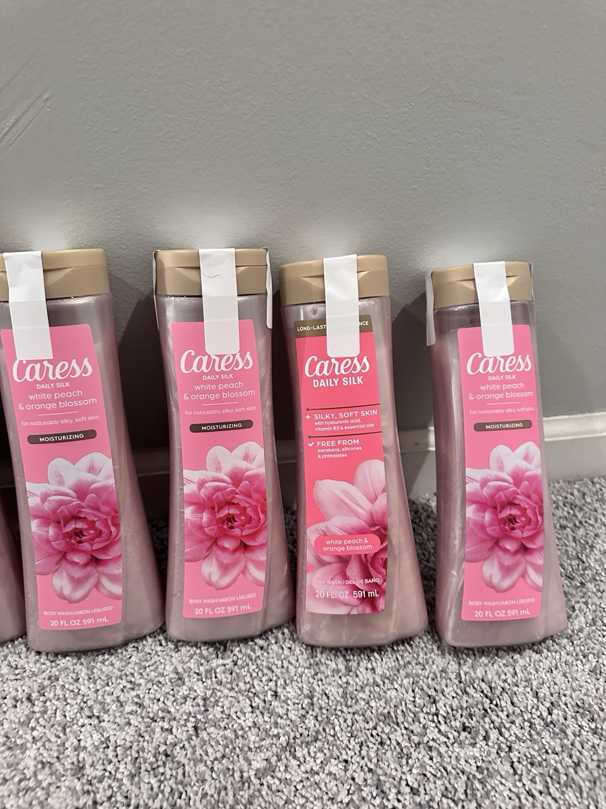 Brand new Caress Daily Silk Body Wash 20 Fl Oz Pack of 8 White Peach Orange Blossom.