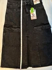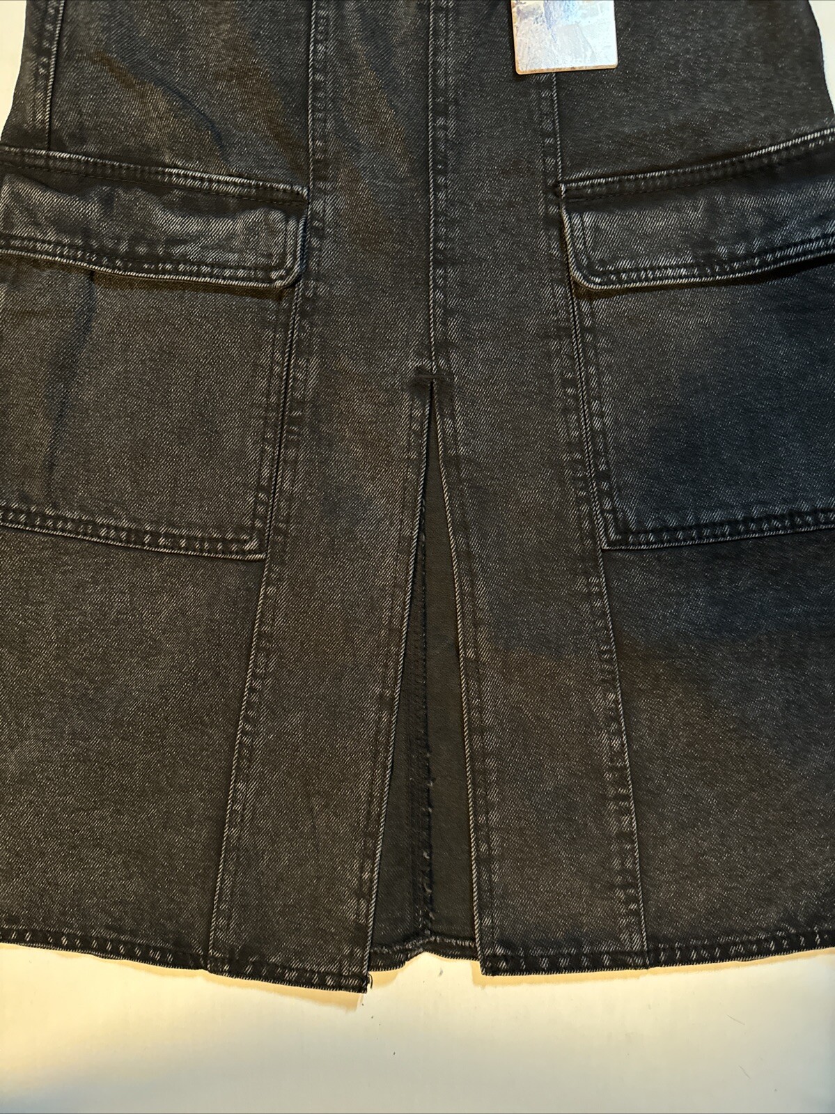 Sincerely Jules Cargo Denim Midi Skirt Women Sz 1/25 Black Wash Front Split