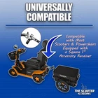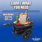 Main Features Bring along your larger items with a Cargo Trailer that has enough space to hold them all, and easily attaches to your scooter or power chair! Sturdy and durable, the Scooter Cargo Trailer has a removable cargo box. It attaches to the rear accessory port on the back of your scooter or powerchairs seat. The Scooter Cargo Trailer can hold anything up to 66 lbs. So you can carry a lot more groceries and heavier items. The Scooter Cargo Trailer features a removable top cover to protect your personal belongings from weather and the elements. The 16” x 1.75” nylon pneumatic tires allow for easy, smooth transportation of you Scooter Cargo Trailer. Reflectors on the front, rear, and both wheels allow for easy visibility in lower light conditions to keep you and your belongings safe and seen. Cargo Trailer Interior Dimensions: 22 3/4"L x 15 1/4" W x 12"D Features: Easy to assemble - Wrench for assembly included 16” pneumatic tires with nylon rim Made from shock-resistant recyclable plastic Removable cover for transportation box Trailer kick stand to keep your trailer level when it's not mounted to your mobility device Adjustable attachment bracket to allow trailer to stay level on different height mobility units *Scooters pictured not included