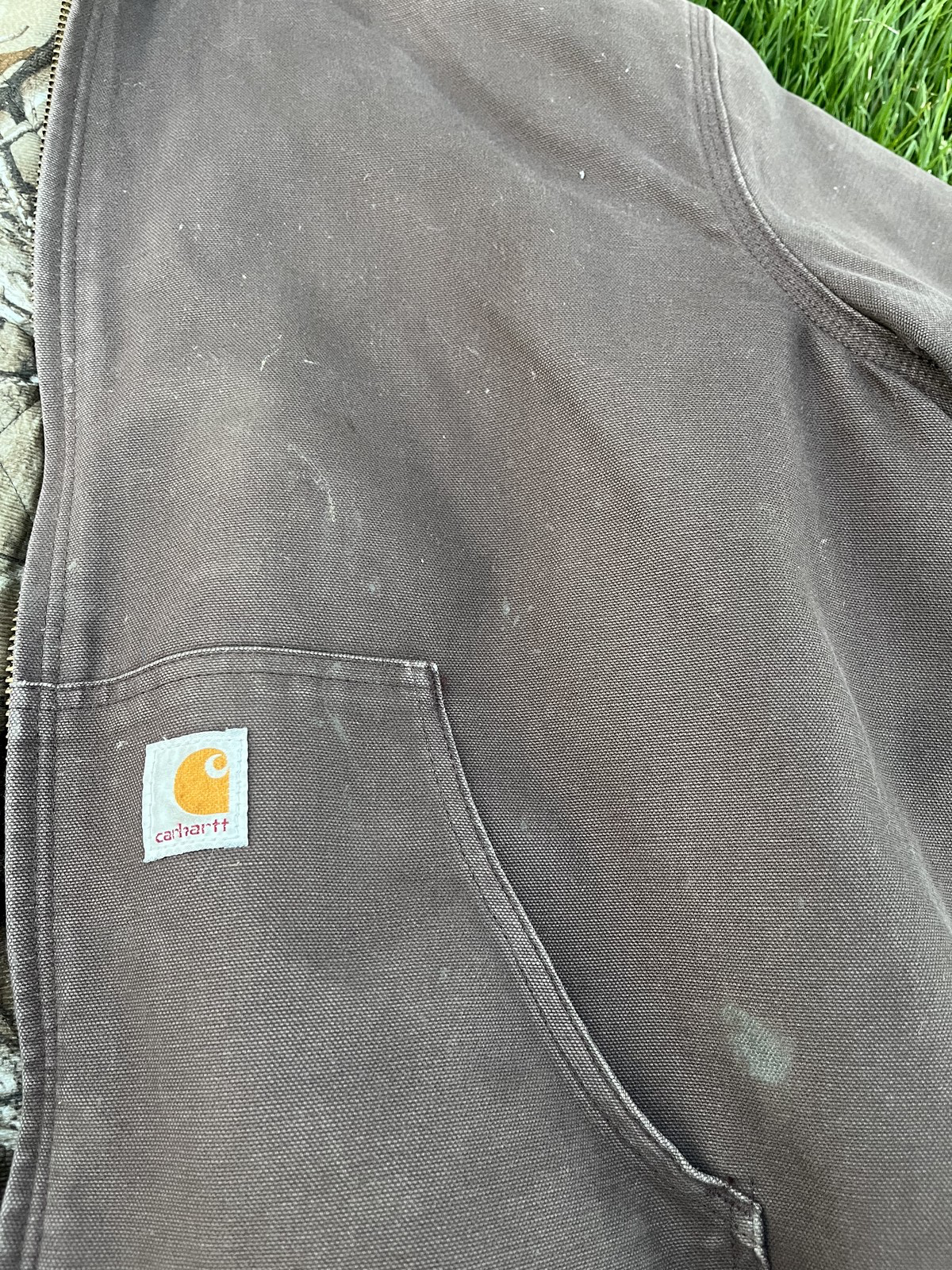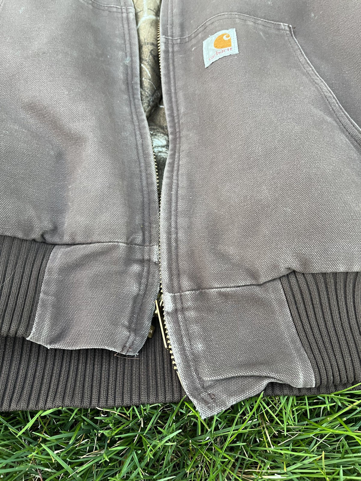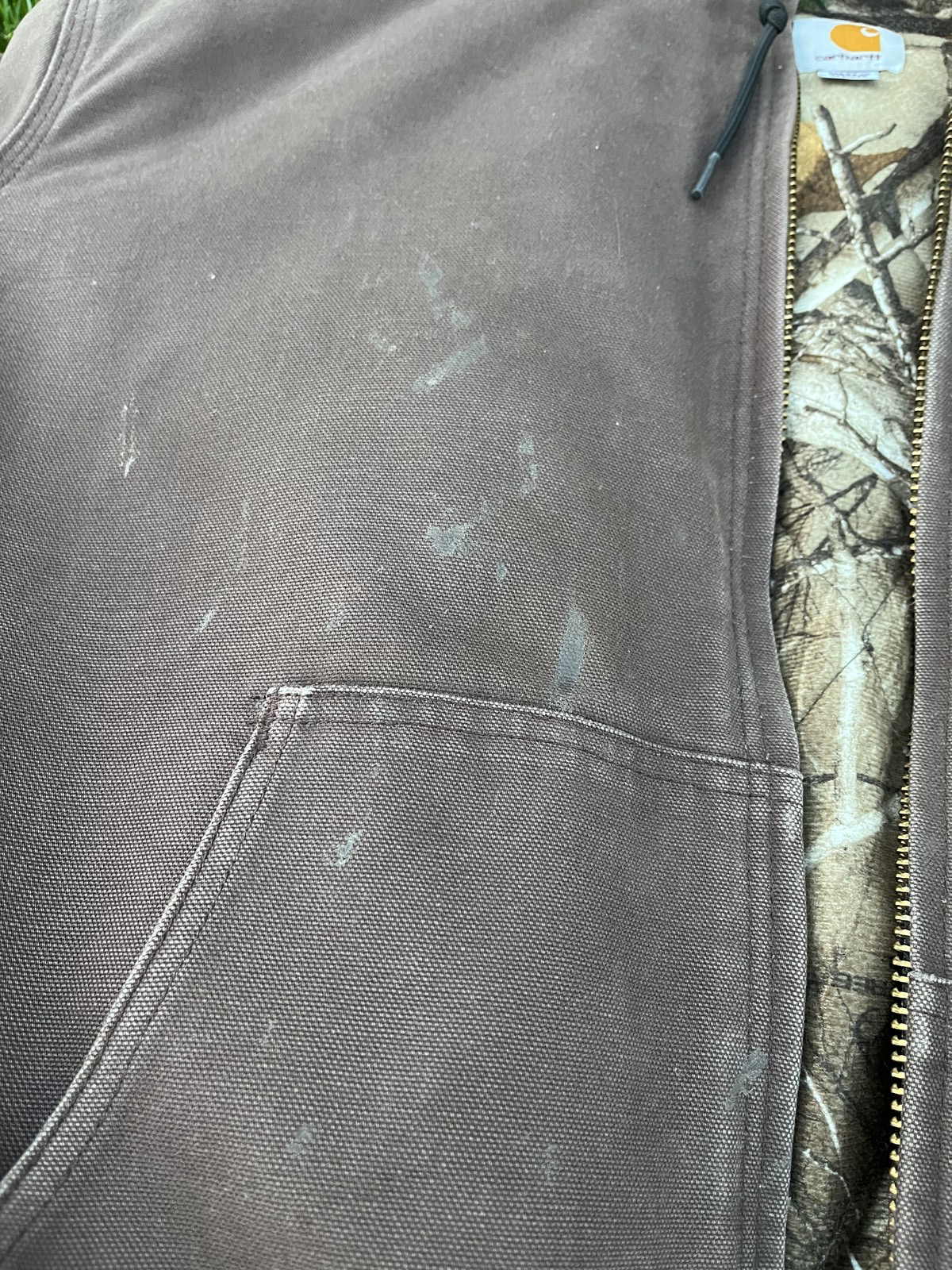 The Carhartt 101074 201 Realtree Camo Quilted Flannel Lined Huntsman Active Jack in 2XL is a rugged and versatile jacket perfect for outdoor activities like hunting and hiking. Made from durable cotton duck shell with a cozy polyester lining and insulation, this jacket provides warmth and protection in colder weather. The quilted flannel lining and Realtree Camo design add style and functionality, while the zip closure and hood make it practical for everyday wear. Machine washable for easy care, this jacket is a must-have for any man looking for a high-quality outerwear option.