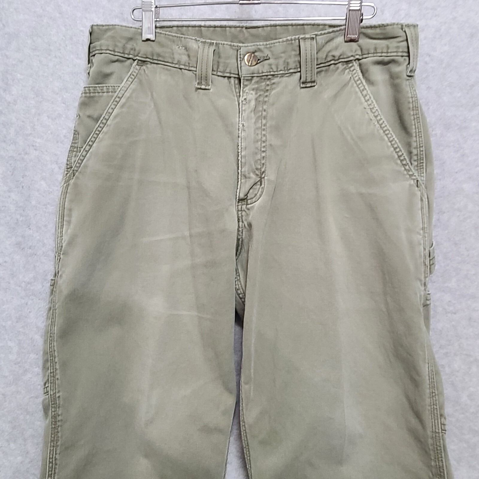 HEMMED (originally 32 in now 29 in) In ok condition. Some distressing on the waist band and zipper area and hems. Some light fading on the front. See pictures and please let me know if you have any questions.