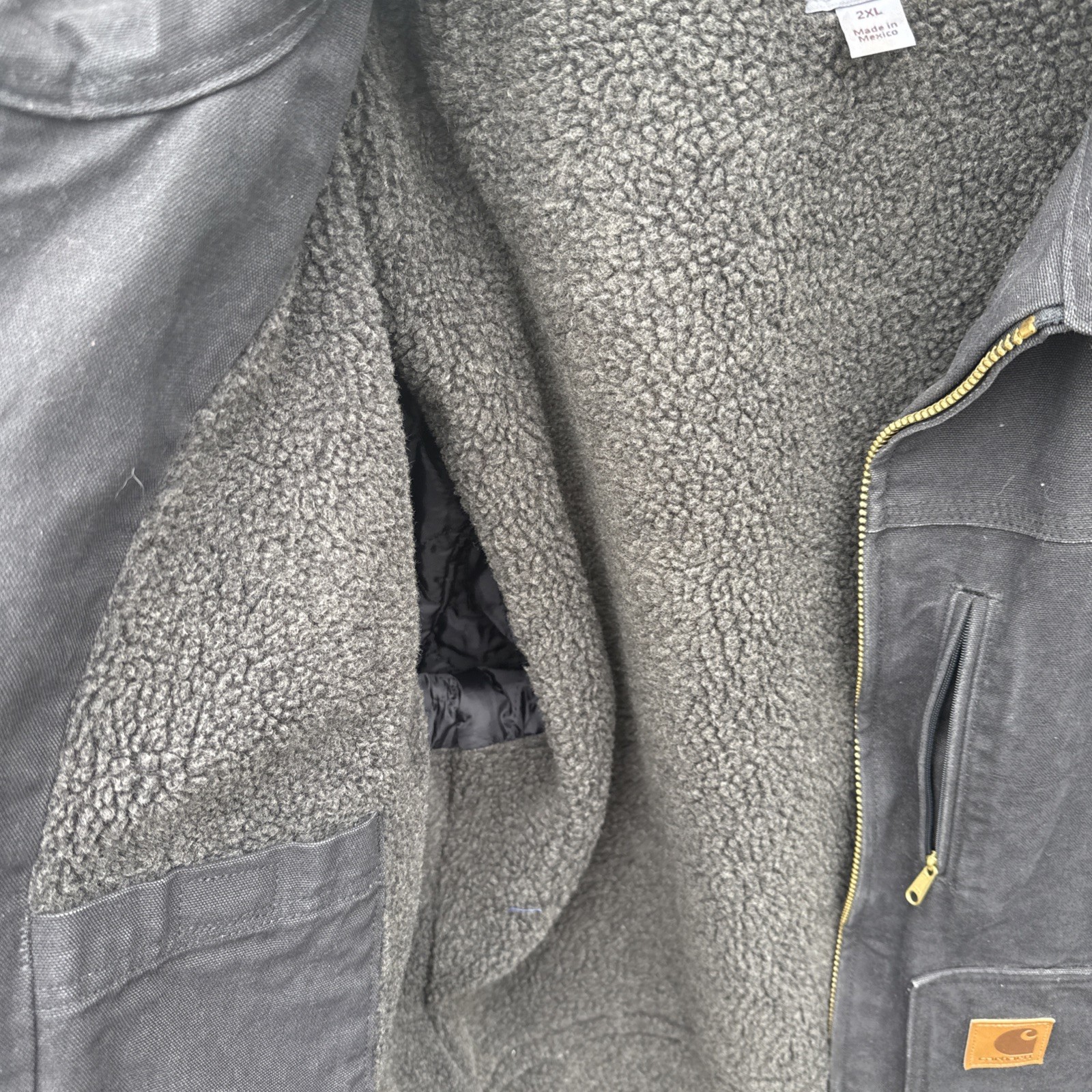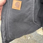 The Carhartt C61 Dark Black Sherpa Fleece Lined Sandstone Duck Jacket in size 2XL is a durable and stylish workwear option for men. Made with 100% cotton sandstone duck outer shell material and lined with cozy sherpa fleece, this jacket provides warmth and protection during the winter, fall, and spring seasons. The jacket features a solid black color, zip closure, and is machine washable for easy care. With its classic design and reliable brand, the Carhartt C61 jacket is a versatile and practical choice for outdoor work or everyday wear.