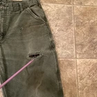 DISTRESSED Carhartt Canvas Duck Flannel-Lined Utility Cargo Carpenter Pant 34x29 Pre-owned. See photos for condition details and measurements. No Size tag. Distressed. Details in Photos. To upcycle, I reuse shipping material as often as possible. Buy more from my store and save on shipping.