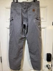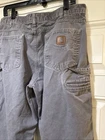 Carhartt Jeans Good used condition Need space in my closet. No stains or unusual wear. The cuffs have been cut to loosen the cuff for more of a boot cut over my boots. Still lots of life in these. Measurements say 36x34 on tag. Tape measure across the front of pants hip to hip is 18”. Actual inseam is 32.5” 100% positive feedback. I ship fast.