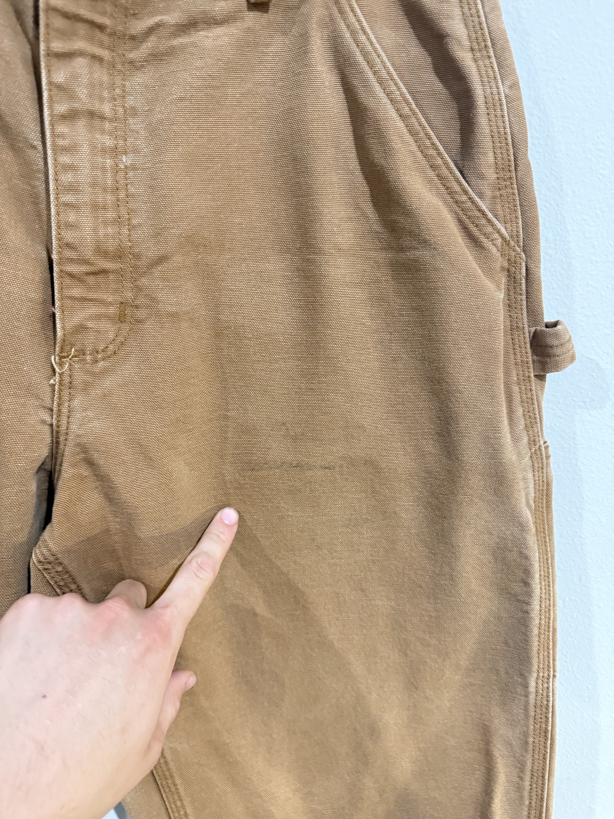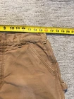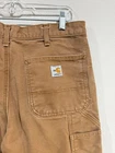 Carhartt FR Pants Mens 34x34 Brown Flame Resistant Workwear Utility HRC2 USA Condition: Good used condition. There is visible wear throughout, including some light marks and spots on the front leg as shown in photos. No major holes or tears, zipper and button are functional. Material: 100% FR cotton (flame resistant cotton), labeled as style FRB229 BRN Features: Utility pockets, hammer loop, reinforced heavy-duty canvas construction, five-pocket work pant style Carhartt FR labeled on back pocket, HRC 2 tag above front pocket Color: Brown duck canvas Tag size: 34x34 (measured approx. 17" across waist, approx. 32" inseam as pictured) Made in the USA, meets OSHA 29 CFR 1910.269 flame resistant requirements Classic Carhartt workwear—rugged and suitable for industrial or utility work settings See photos for all details and condition