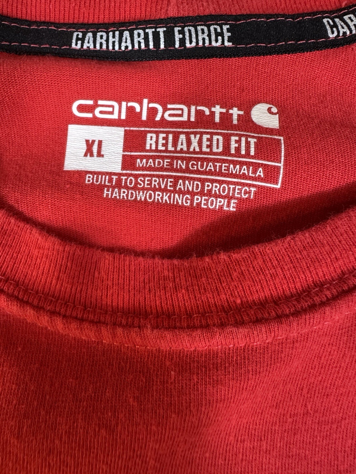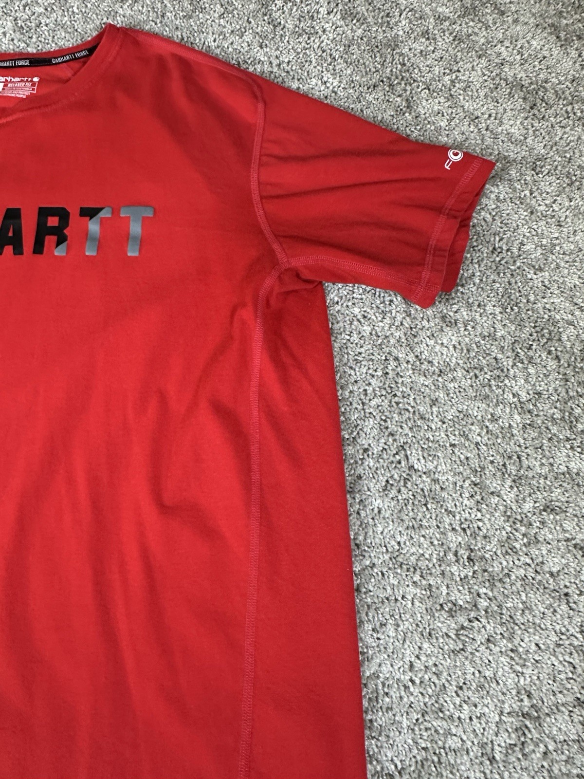 The Carhartt Force Men's Size X Large Relaxed Fit Fire Red Short Sleeve T-Shirt is a stylish and comfortable addition to any man's wardrobe. Made from a cotton blend material, this shirt features a crew neckline, short sleeves, and a relaxed fit for added comfort. The graphic print of the Carhartt logo and a fire-themed design add a touch of personality to this classic red t-shirt, making it a versatile and eye-catching choice for casual wear. 3001