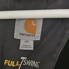This Carhartt Full Swing Jacket is a high-quality work coat made from a durable cotton blend canvas fabric. It features a gray color and is designed for men in size 2XL. The jacket is perfect for outdoor jobs that require a reliable and comfortable overcoat. The Carhartt brand is known for producing top-quality workwear, and this jacket is no exception. With its regular size type and overcoat style, it is suitable for a wide range of applications. Whether you're working in construction, landscaping, or any other outdoor profession, this jacket is sure to meet your needs. There is a tear and staining that I have not tried cleaning. Sold as is