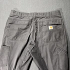 *Please review all photos closely before purchasing due to pants having mild signs of use and wear from washing and being preowned to prevent return.* The Carhartt Full Swing Pants in men's size 36x30 (measuring 35x30) are versatile gray canvas work utility pants perfect for outdoor and workwear occasions. These relaxed fit carpenter style pants feature a zip closure, 5-pocket design, and belt loops for added convenience. Made from durable cotton material, these pants are machine washable and suitable for all seasons. The Carhartt logo accents add a touch of brand identity to these practical and comfortable pants. Ideal for cold weather or warm, these pants are a reliable choice for any outdoor or work-related tasks. Work Oilfield Utility Durable Original Construction Carpenter Tough Plumber Flooring Carpet Layer Concrete Finisher Pipeline Welder Foundry Factory Industrial