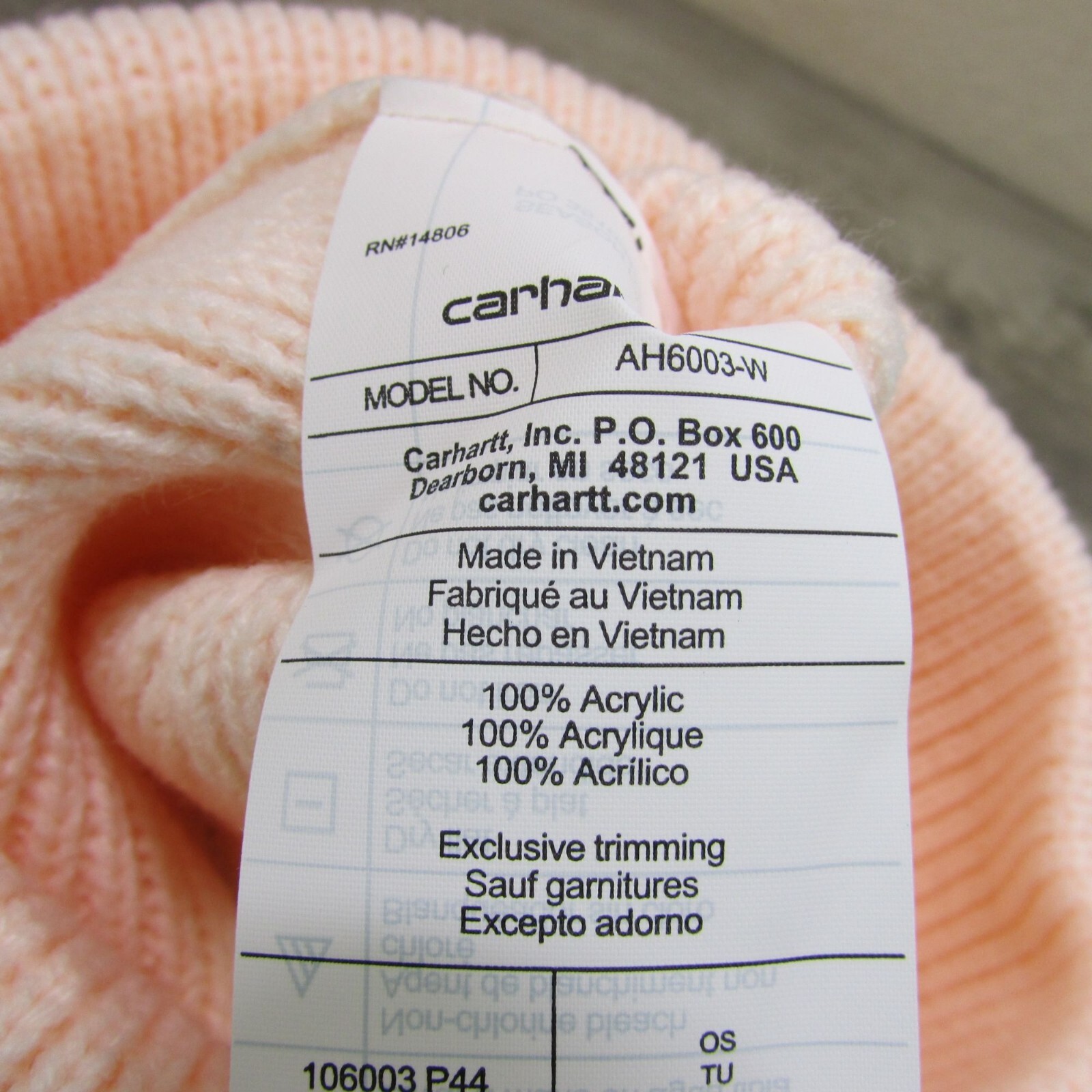 New with tags HAS A SPOT ON FRONT THAT SHOULD WASH OUT (SEE PICS) One Size Brand: Carhartt Color: Georgia Peach Style # AH6003 Knit Pom Pom Cuffed Beanie Winter Stocking Cap Hat