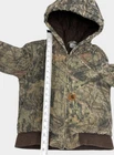 Theme: Outdoor Performance/Activity: Work Department: Boys Accents: Logo Size: S Fit: Regular Fabric Type: Canvas Closure: Zip Outer Shell Material: Cotton Pattern: Camouflage Features: Hooded, Pockets Style: Basic Jacket Color: Multicolor Season: Fall, Spring, Summer, Winter Brand: Carhartt Type: Jacket
