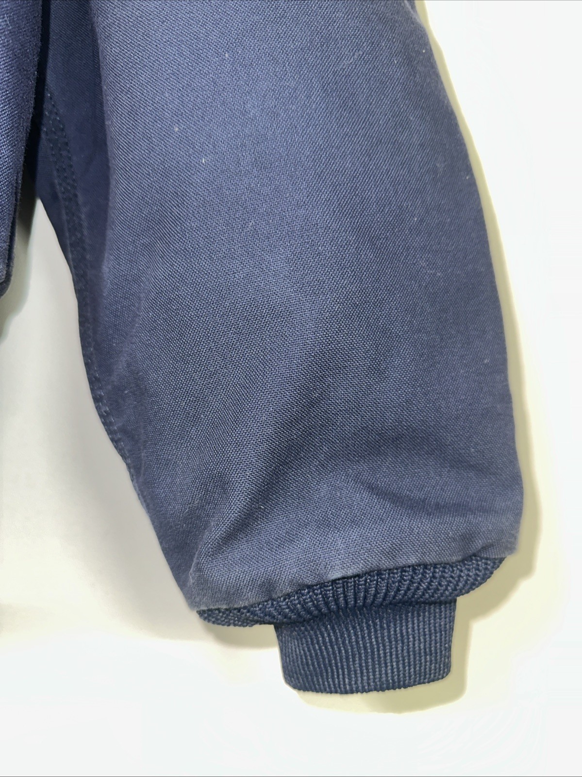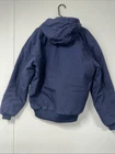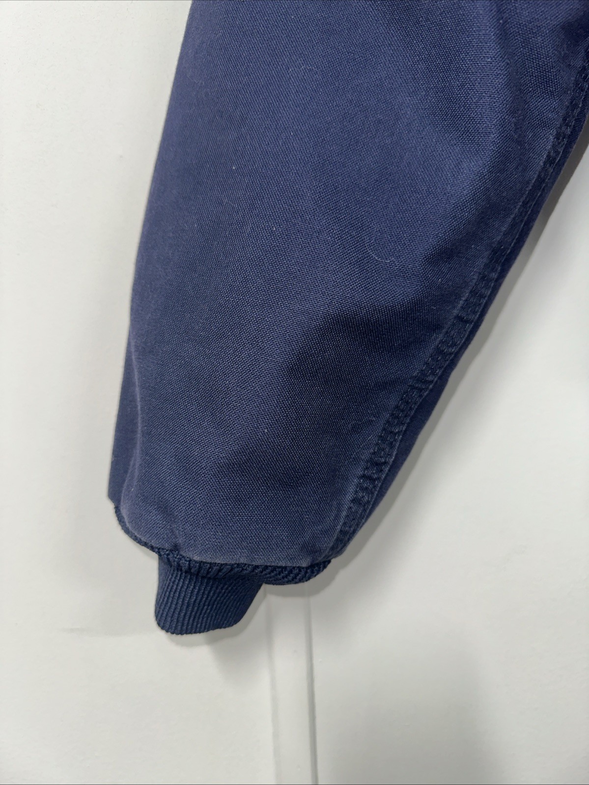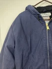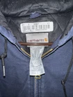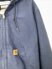 The Carhartt Canvas Jacket in Navy Blue is a durable and stylish outerwear option for men. Made from cotton canvas with a nylon lining, this bomber jacket features insulation to keep you warm during the winter, fall, and spring seasons. The hooded design and zip closure make it practical for casual or workwear occasions, while the blue color and logo accents add a stylish touch. With its regular fit and quality construction from Carhartt, this jacket is suitable for outdoor activities like walking, work, and hiking. Used with name on tag shown it pictures see all photos for condition size large