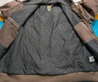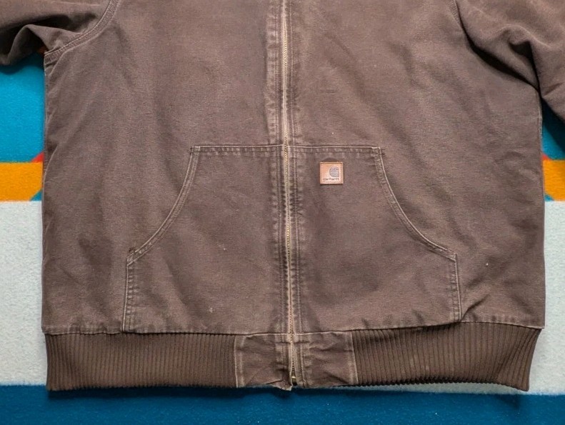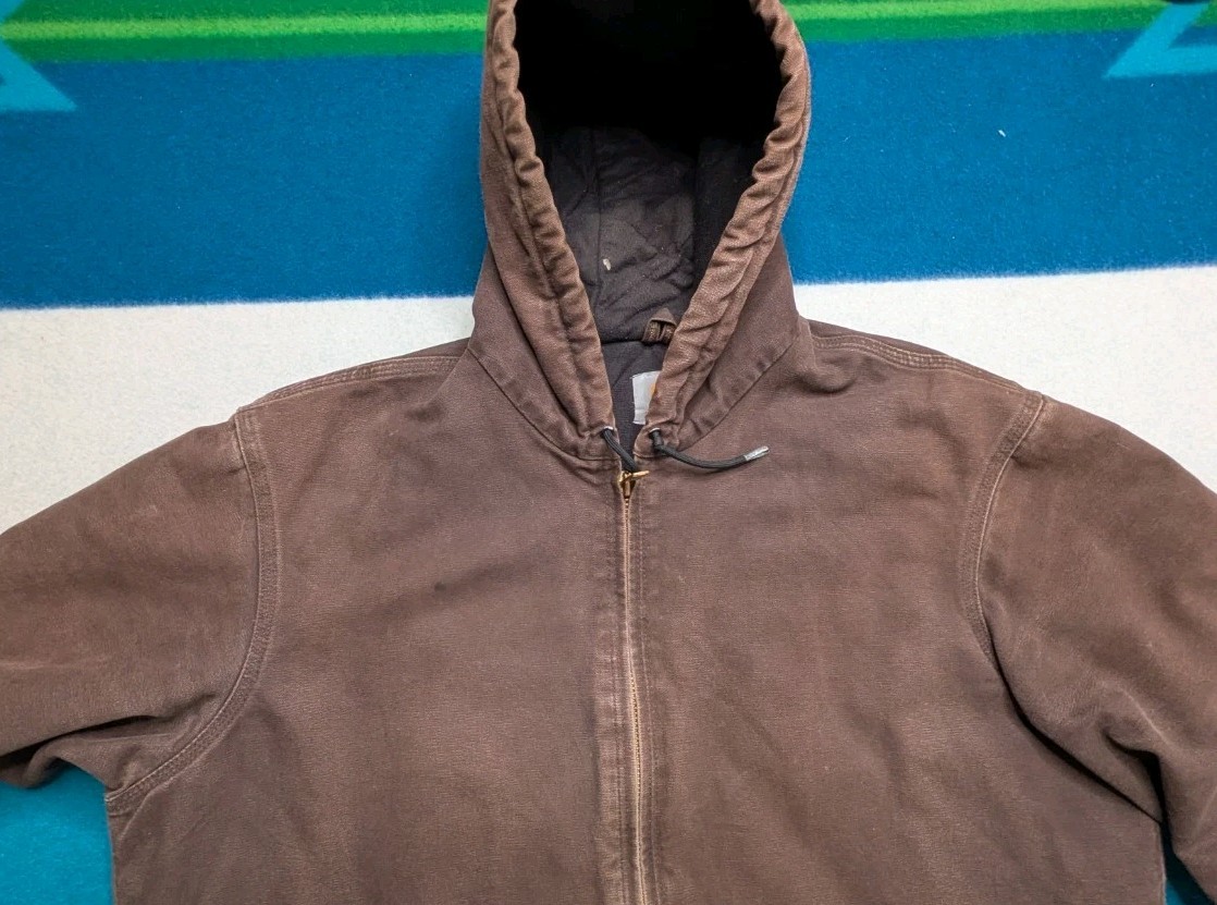 XL Tall. Pit to pit 28" top of shoulder to bottom 32" Took up close pics to show any imperfections, discoloring and fading. Last pics show liner has fuzz balls and some debris and small hole by hood.