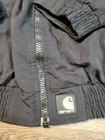 Men's Carhartt J72 BLK Jacket. Black Nylon Fleece Lined Full Zip Coat. Size 2XL, measures approx 27 1/2" chest x 27" length. Boxy fit. Please use measurements provided for approximate size.