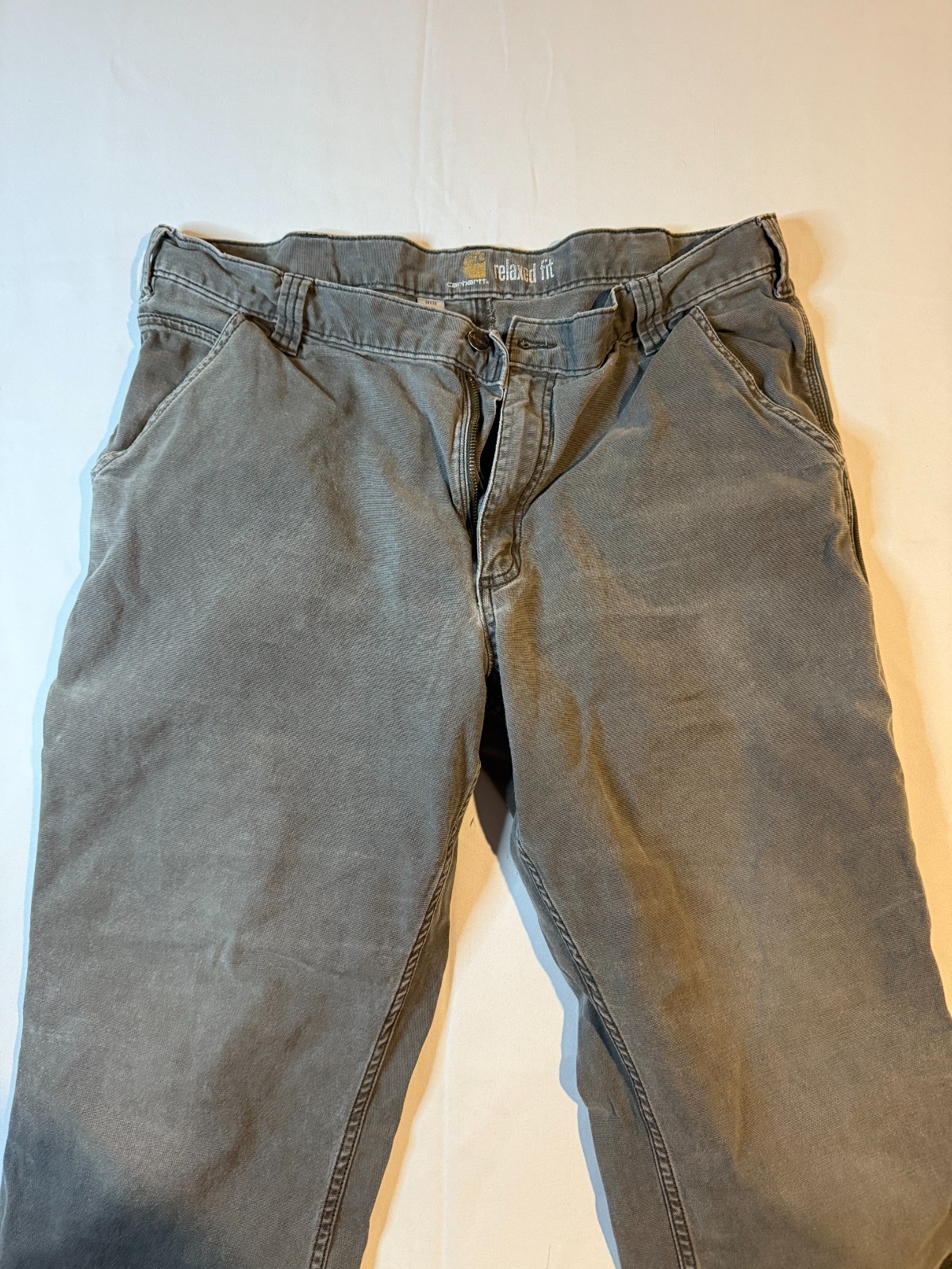 Carhartt Jeans Mens Size 38X30 Gray Denim Relaxed Fit Rugged Canvas Work Pants Pre-owned, exact items on photos