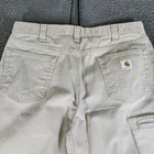 Classic Carhartt work pants in khaki. Straight leg fit with traditional 5-pocket styling. Made from durable cotton. Features signature Carhartt logo on back pocket. In good pre-owned condition with no major flaws or damage. Style: Khakis Color: Beige Department: Men Inseam: 30 in Type: Pants Fit: Regular Material: Cotton Waist Size: 36 in Features: Pockets, Durable, Straight Leg, Traditional 5-Pocket Style, Brand Logo Detail Fabric Type: Canvas Front Type: Flat Front Leg Style: Straight Accents: Logo, Button Occasion: Casual, Workwear Keywords: carhartt, work pants, khaki pants, straight leg, cotton pants, beige pants, mens pants, workwear, casual pants, utility pants all items have been cleaned and disinfected we stand behind all we sell so please contact us if you have an issue with any order