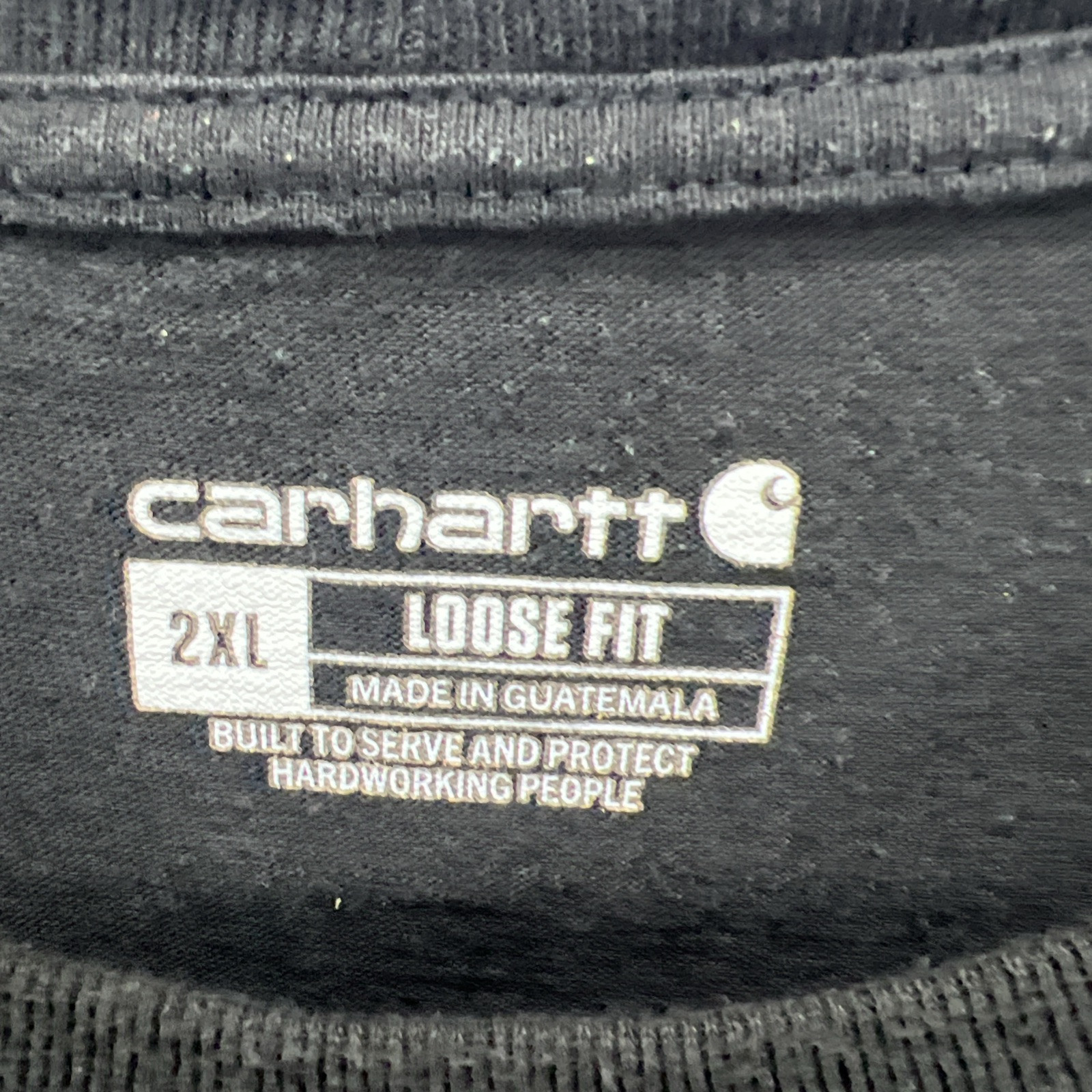 Upgrade your casual wardrobe with this Carhartt Men's T-Shirt. This black crew neck tee features a relaxed fit and short sleeves, making it perfect for outdoor activities or classic casual wear. The shirt is made of a polyester-cotton blend and is machine washable for easy care. The Carhartt logo accent adds a touch of style to this classic tee. This T-Shirt is a great addition to any casual wardrobe and is available in size 2XL. Perfect for the outdoor enthusiast or someone who loves a classic comfortable tee.