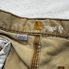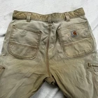Carhartt Pants Mens 36x34 Relaxed Fit Tan Condition: Heavy wear, multiple flaws present — noticeable stains throughout, small hole near rear seam, significant discoloration, distressed fabric, and wear on cuffs (see all photos for condition). Material: 98% Cotton, 2% Spandex Style: Relaxed Fit workwear pants, model number 102802-918 Double knee construction for durability Classic Carhartt logo patch on back pocket Made in Nicaragua Tag size: 36x34 Great for rugged outdoor work, construction, or as grunge/distressed style