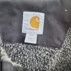 Carhartt Jacket Mens 3XL Black Full Zip Sherpa Lined Workwear Canvas Coat Condition: Good pre-owned condition with moderate wear, some visible lint and minor discoloration, small marks on sleeve close to the cuff as shown in photos Sturdy black cotton canvas exterior with signature Carhartt logo patch on front pocket Super warm thick gray sherpa fleece lining on the body, quilted-lined sleeves Full zip front closure with heavy-duty YKK zipper Two large lower front hand pockets, one vertical zip chest pocket Rib knit cuffs inside sleeves for warmth and wind protection Tag size: 3XL (Mens) Made in India Classic heavy-duty Carhartt design for workwear and outdoor use Approximate measurements (shown in photos): Chest (pit to pit) about 32", Length about 28.5" Great rugged winter coat, perfect for cold weather and work environments