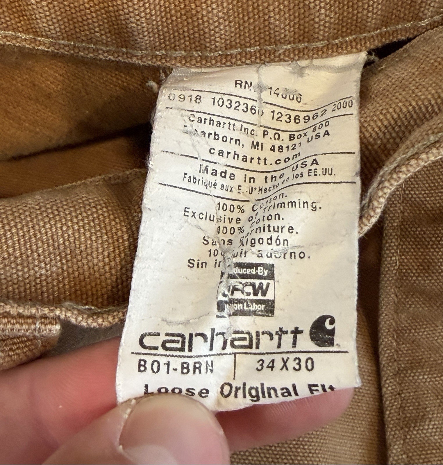 The Carhartt Men’s B01 BRN Double Knee Duck Canvas Carpenter Pants in size 34in x 30in are versatile and durable pants suitable for various occasions such as travel, casual wear, and workwear. Made from sturdy canvas fabric with a solid tan color, these pants feature a zip and button closure, flat front design, and multiple pockets for added functionality. The loose fit and easy-care properties make them comfortable for all-day wear, while the USA grunge theme adds a stylish touch to the overall design. Perfect for any season, these Carhartt pants are a reliable choice for the modern man. This work pants are preowned and have some flaws. Please review pictures and measurements before purchasing. Width: 16in Length: 39in Inseam: 29in Leg Opening: 9in