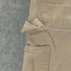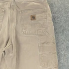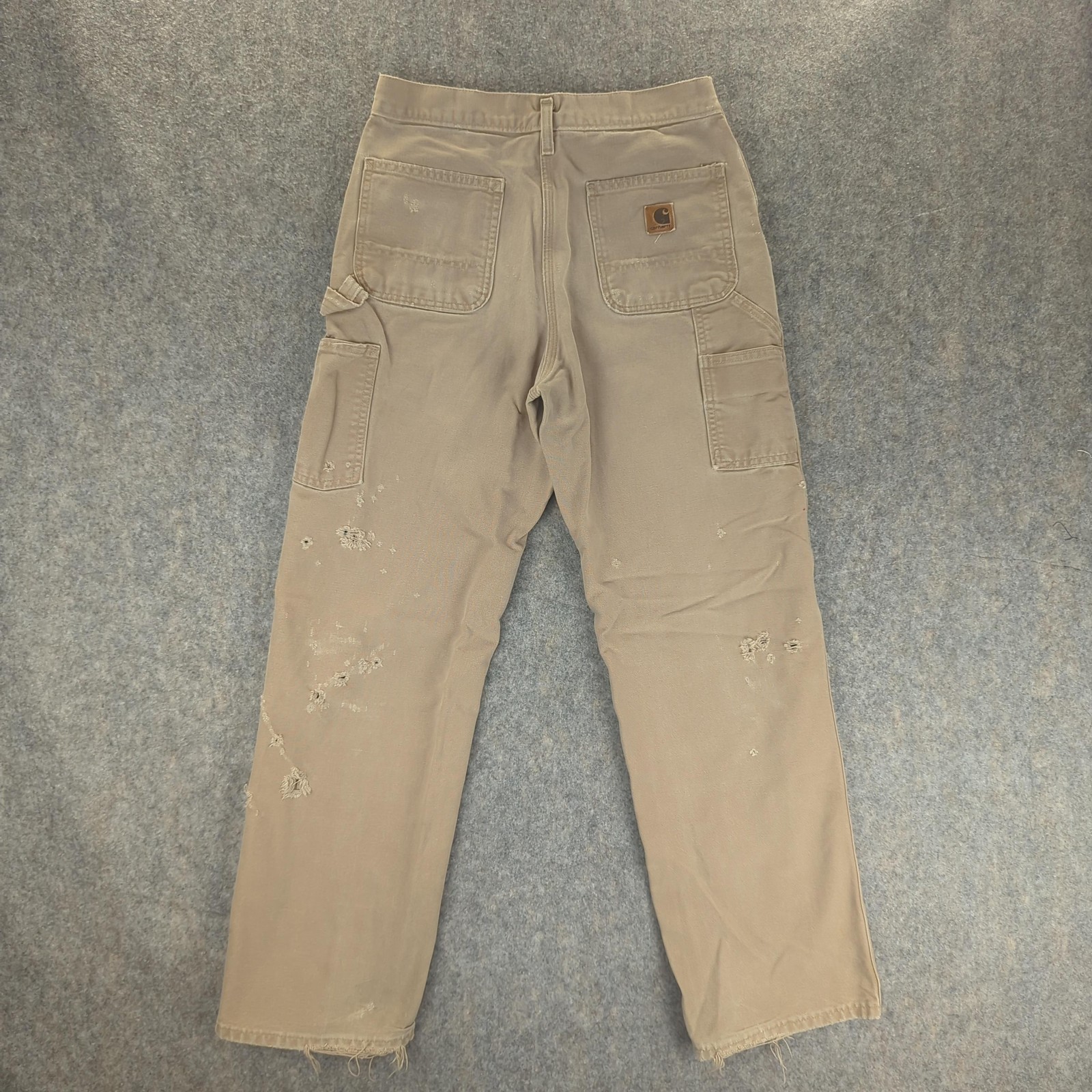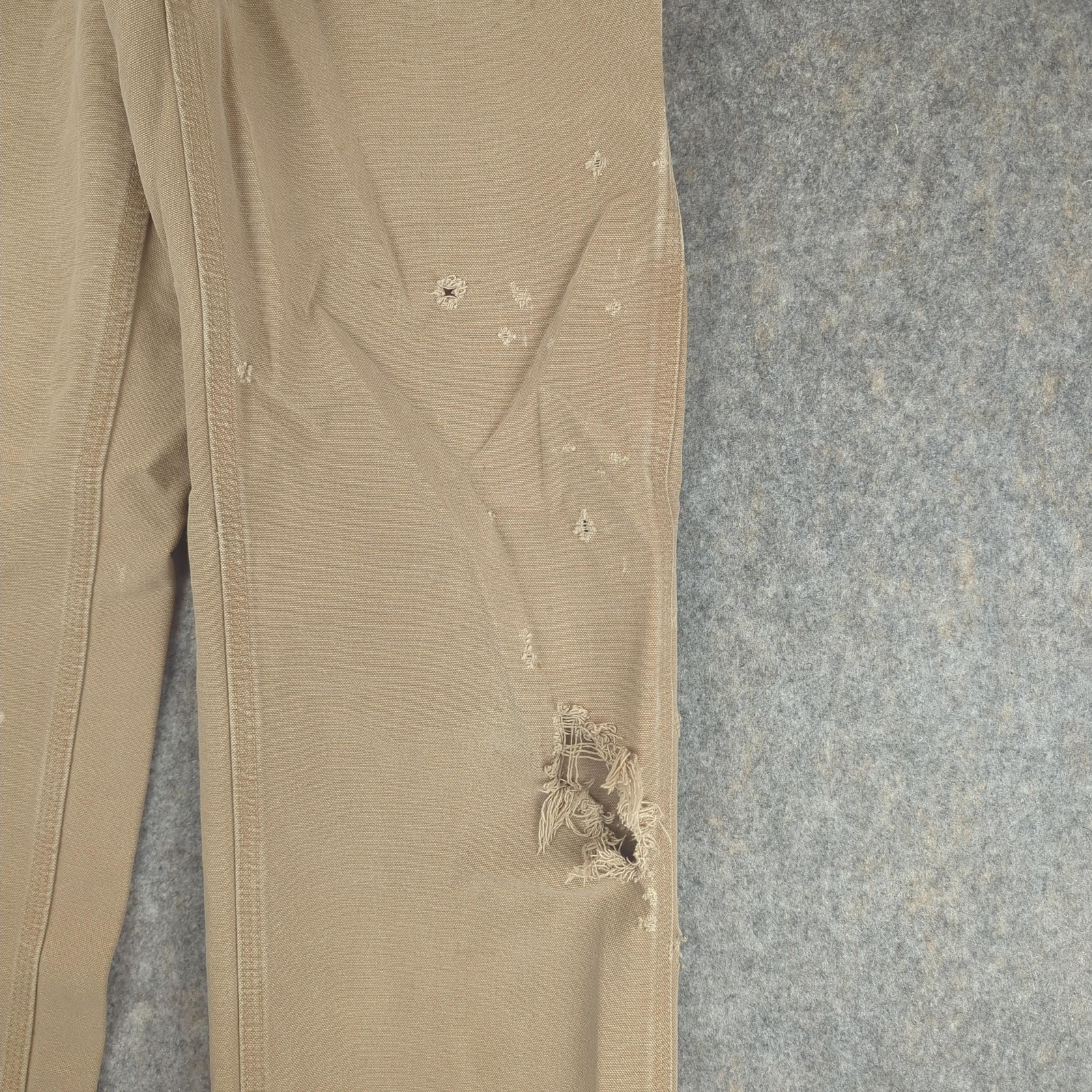 Carhartt Pants Mens 36x32 Tan B11 Double Knee Carpenter Distressed Workwear Condition: Fair, heavy wear and multiple flaws with significant distressed areas throughout legs, fraying and holes on both legs front and back, heavy wear and a large hole on the front right knee, loose and frayed hems, visible overall fading and soiling. See photos for all flaws. Style code: B11 DST Durable Carhartt duck canvas construction, 100% cotton Classic carpenter style with hammer loop and utility pockets Brass Carhartt branded button at waist, leather patch logo on back pocket Tag size: 36 x 32 (confirmed by measure) Made in USA Heavy duty work pants, ideal for workwear, repair, project use, or distressed grunge streetwear style