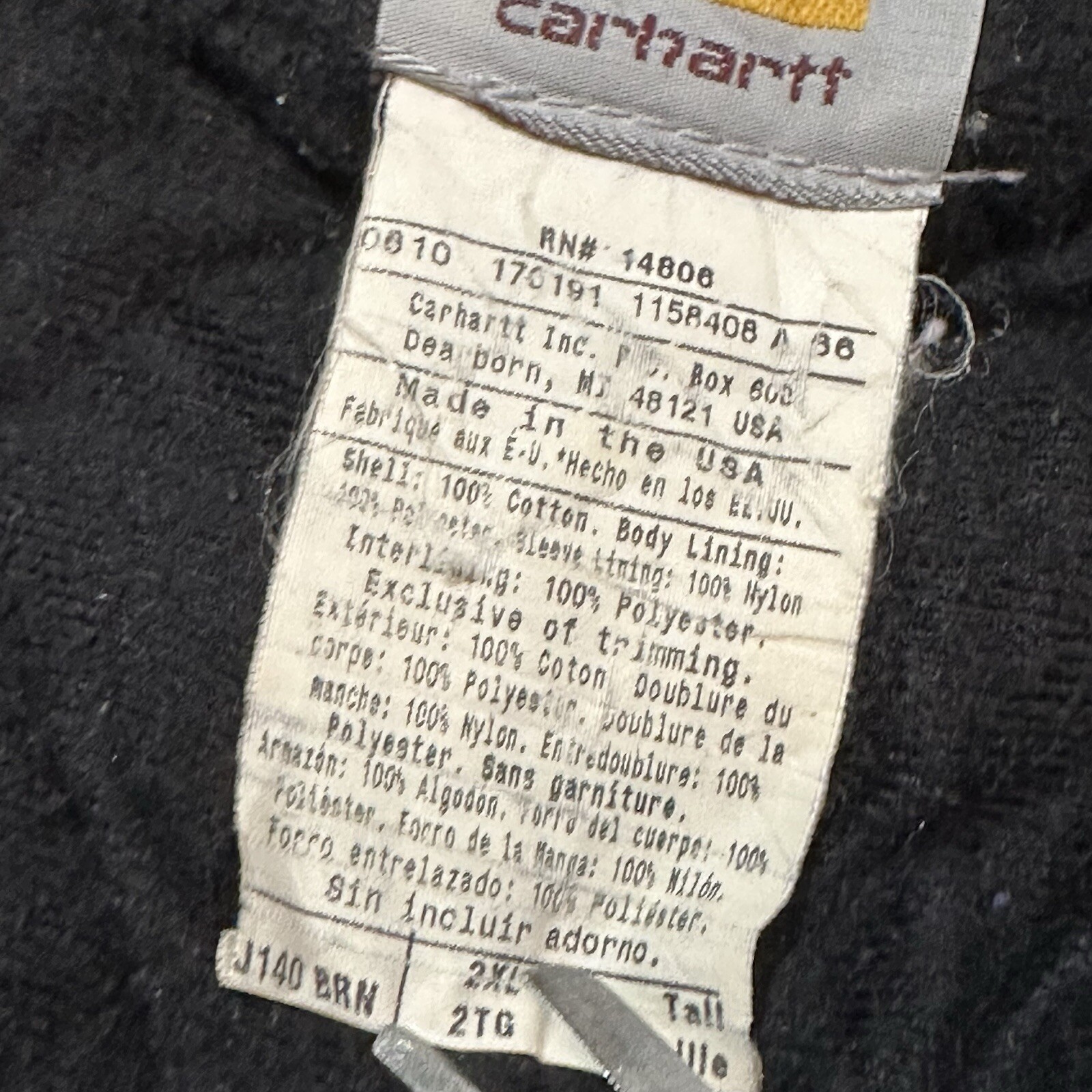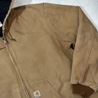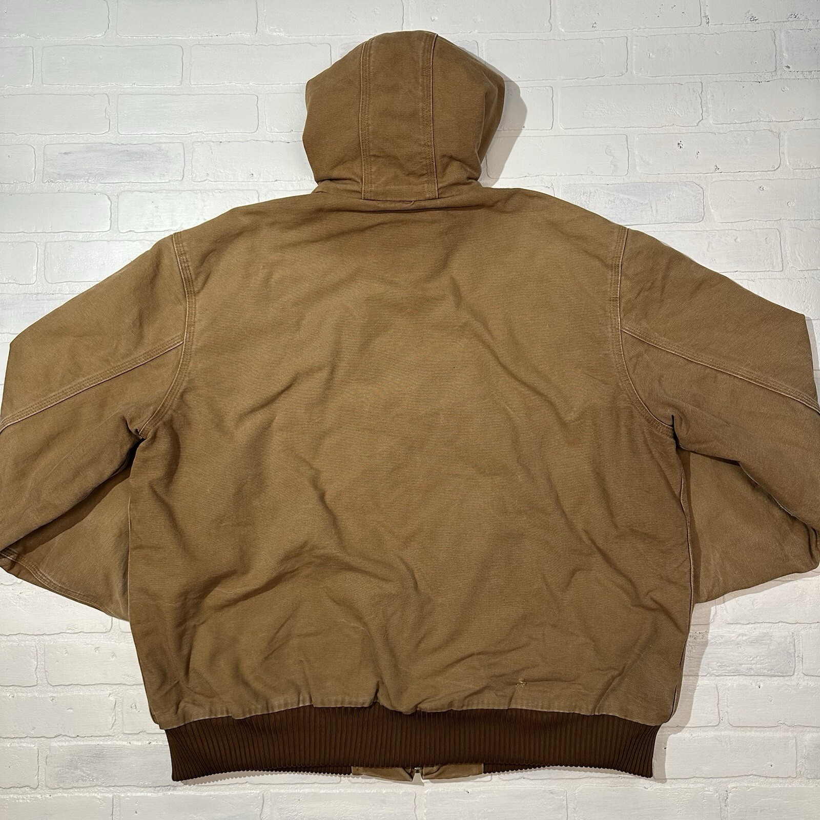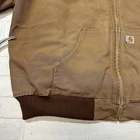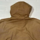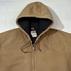 Carhartt J140 Brown Canvas Bomber Jacket Mens Zip Up Hooded 2XL Made In USA Vintage Seller does NOT accept returns. See photos for measurements & flaws. Sizes vary depending on manufacturer & era. Please review item description, flaws & sizing prior to purchasing.