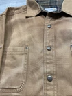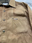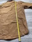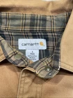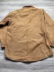 Please refer ti pictures for details flaws and Measurements The Carhartt Shacket is a versatile and stylish men's jacket made from durable canvas with a flannel lining, perfect for all seasons. The snap button closure and spread collar add a touch of sophistication to the rugged bomber jacket style. Ideal for various occasions including travel, casual outings, work, and more, this brown jacket features a plaid pattern and is machine washable for easy care. With a size large and a regular fit, this jacket is a practical and fashionable choice for the modern man.