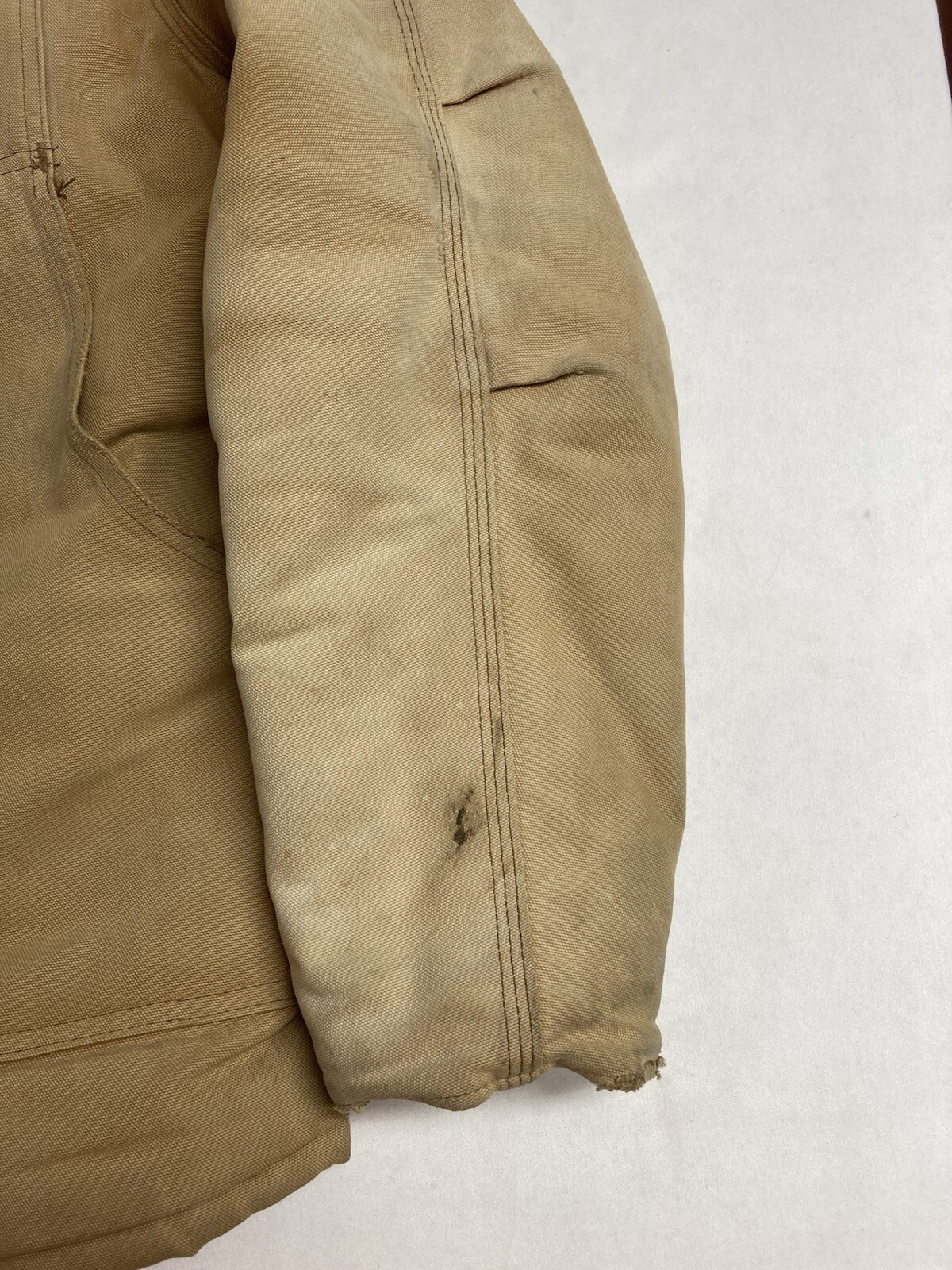 Carhartt men’s brown Duck canvas quilt lined coat size large distressed. Fast Shipping. Smoke free and pet free environment.